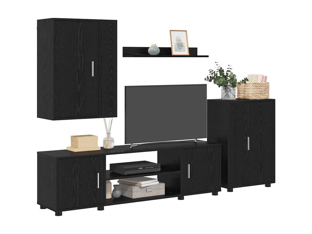 Ensemble de meuble TV 4 pièces Montage mural 4 pièces Chêne noir