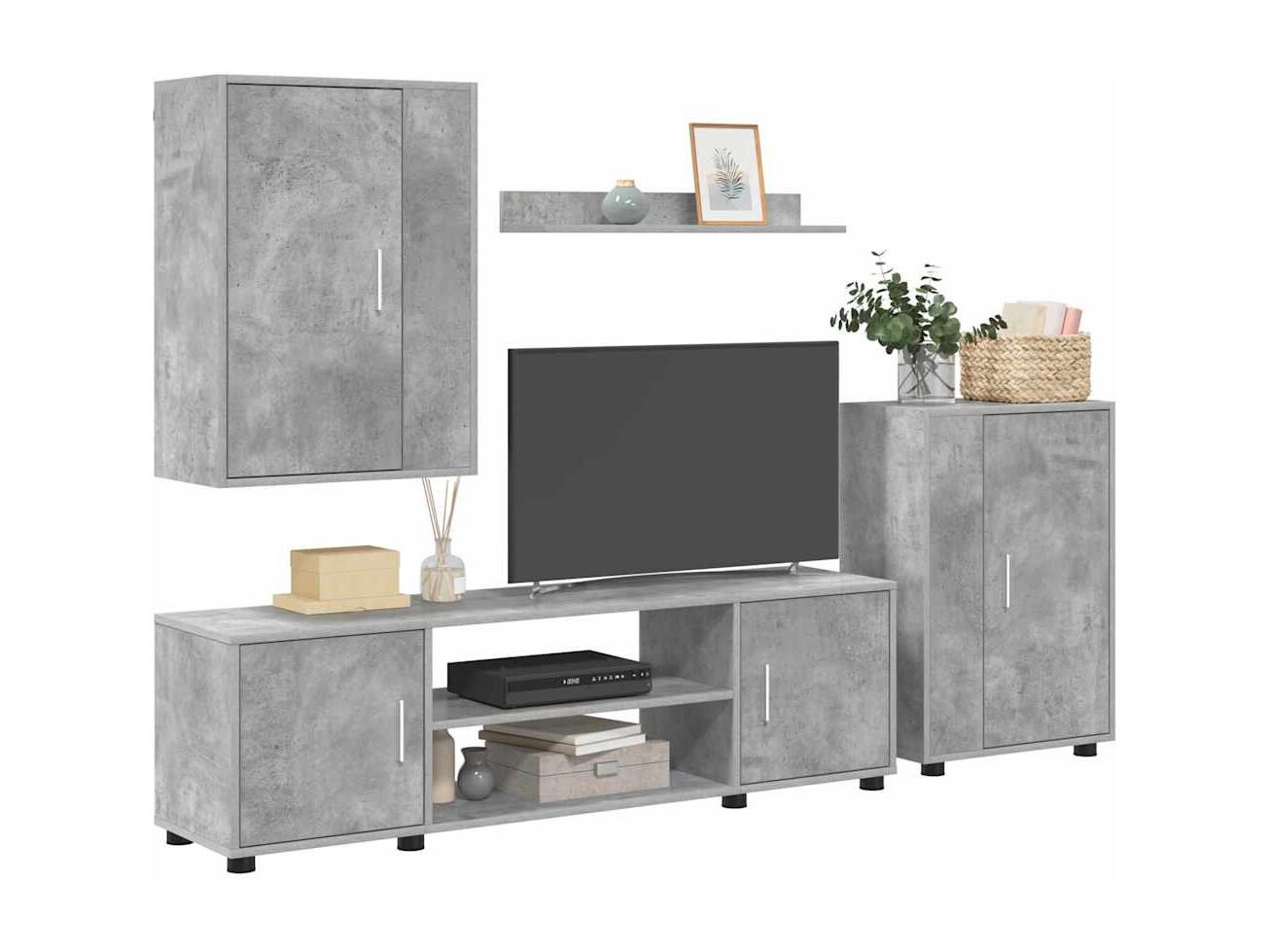 Ensemble de meuble TV 4 pièces Montage mural 4 pièces Gris béton