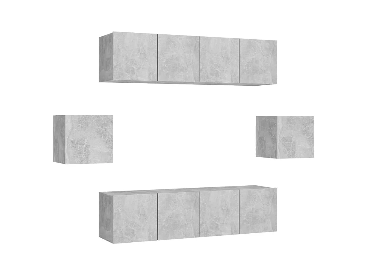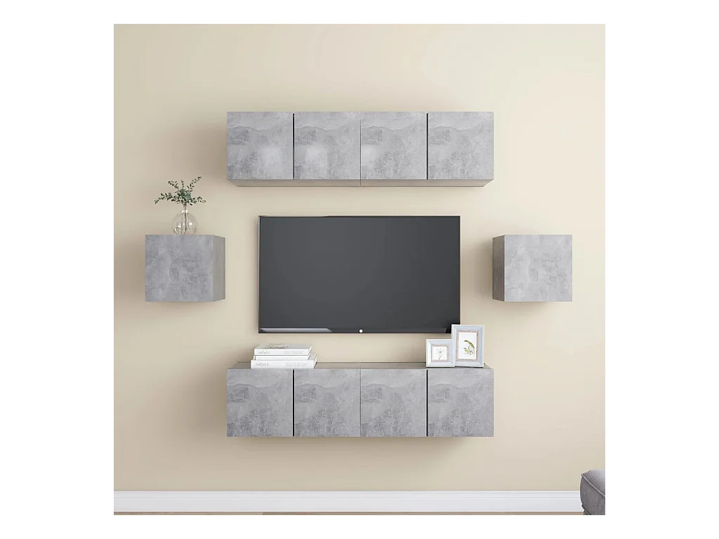 Ensemble de meuble TV 6 pièces Gris béton Aggloméré