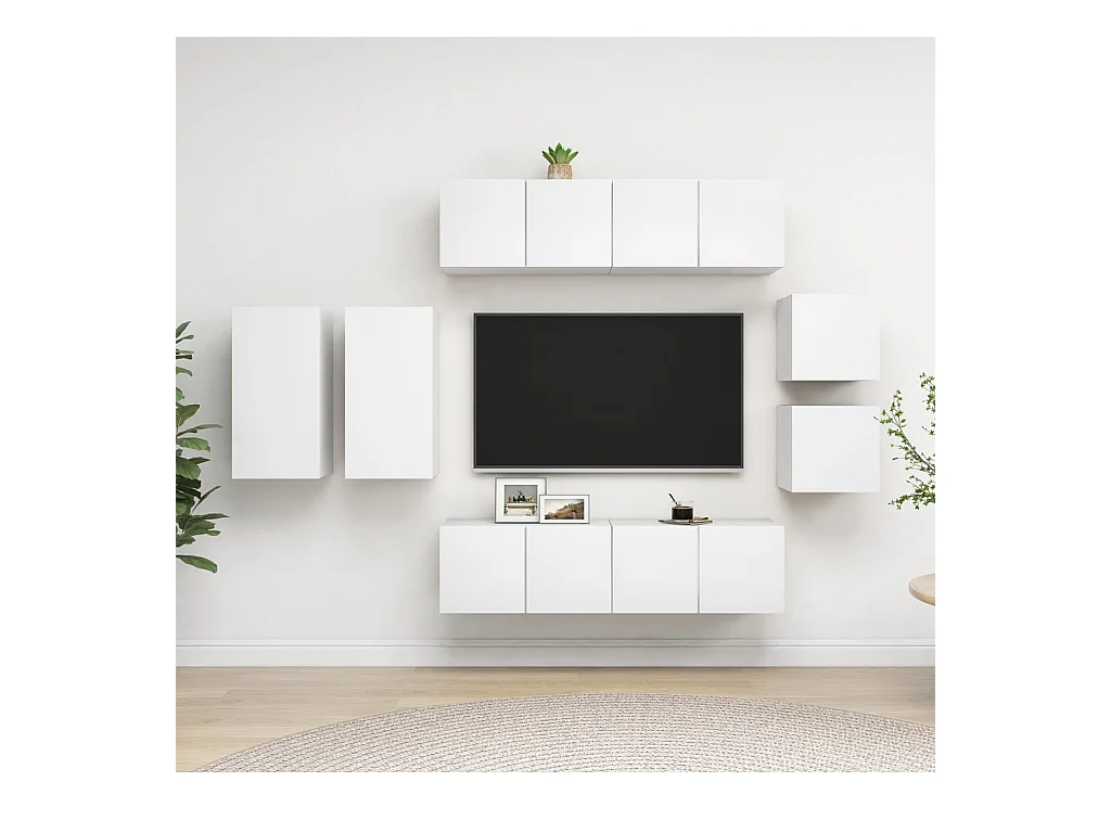 Ensemble de meuble TV 8 pcs Blanc Aggloméré