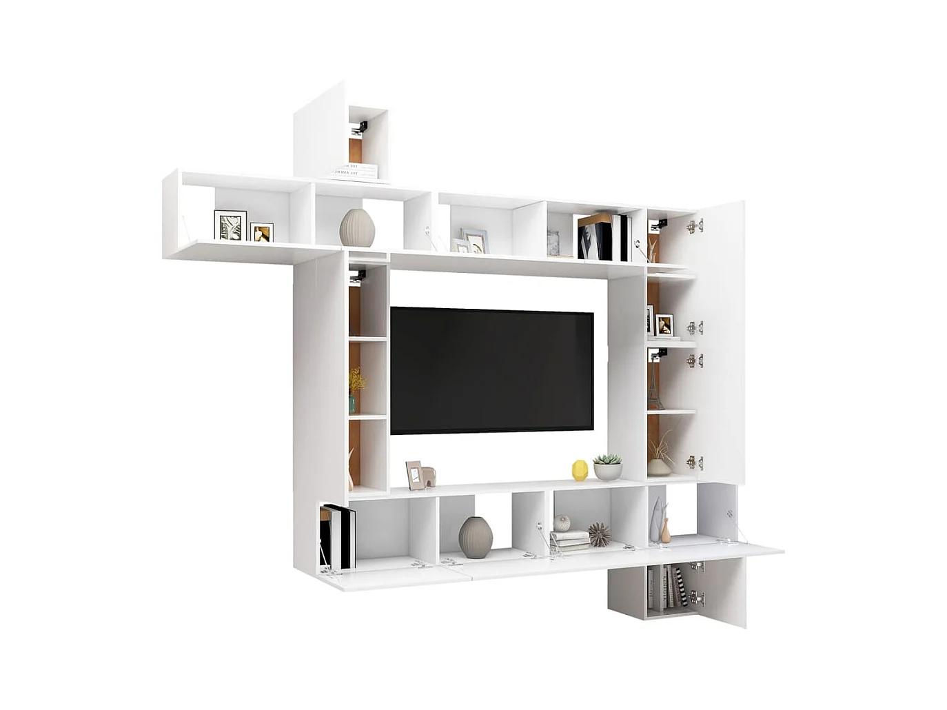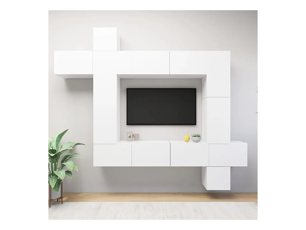 Ensemble de meuble TV 9 pièces Blanc Aggloméré