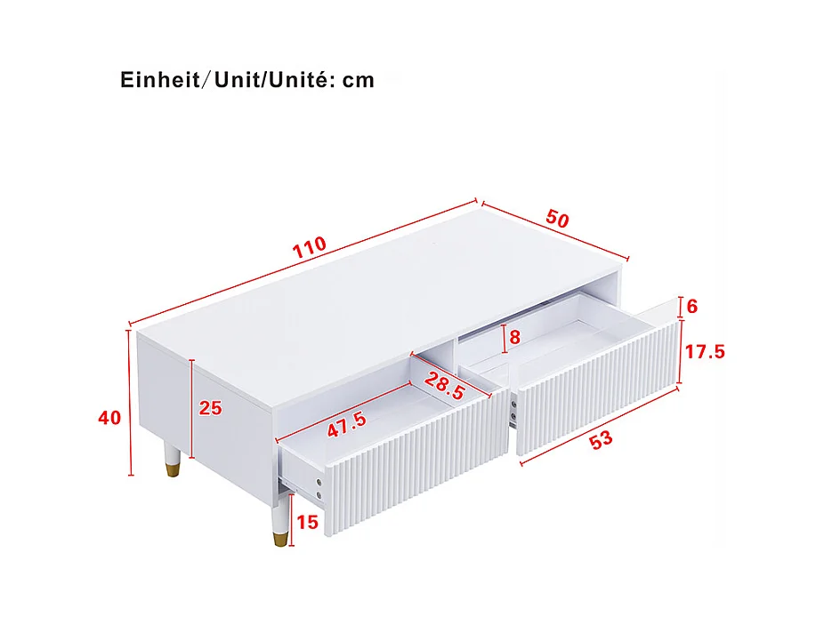 Ensemble de meuble TV de luxe léger et table basse - combinaison de salon - avec tiroirs - MDF - blanc