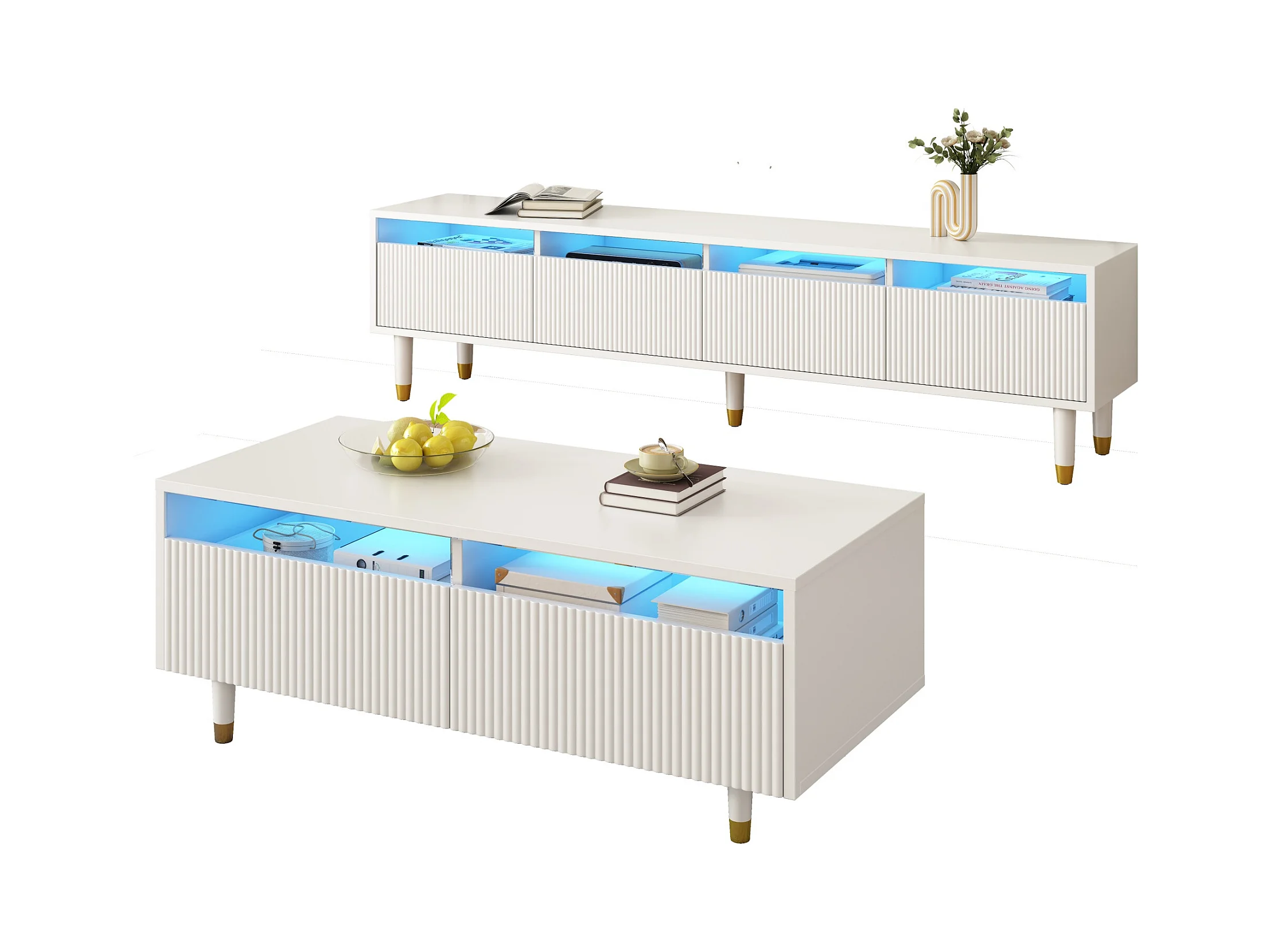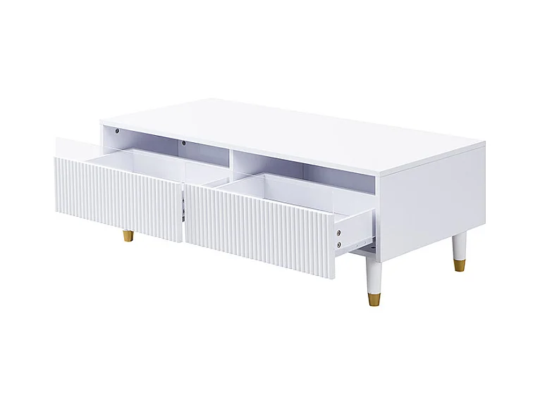 Ensemble meuble salon brillante - meuble TV et table basse avec Leds + 4 tiroirs - aggloméré - blanc
