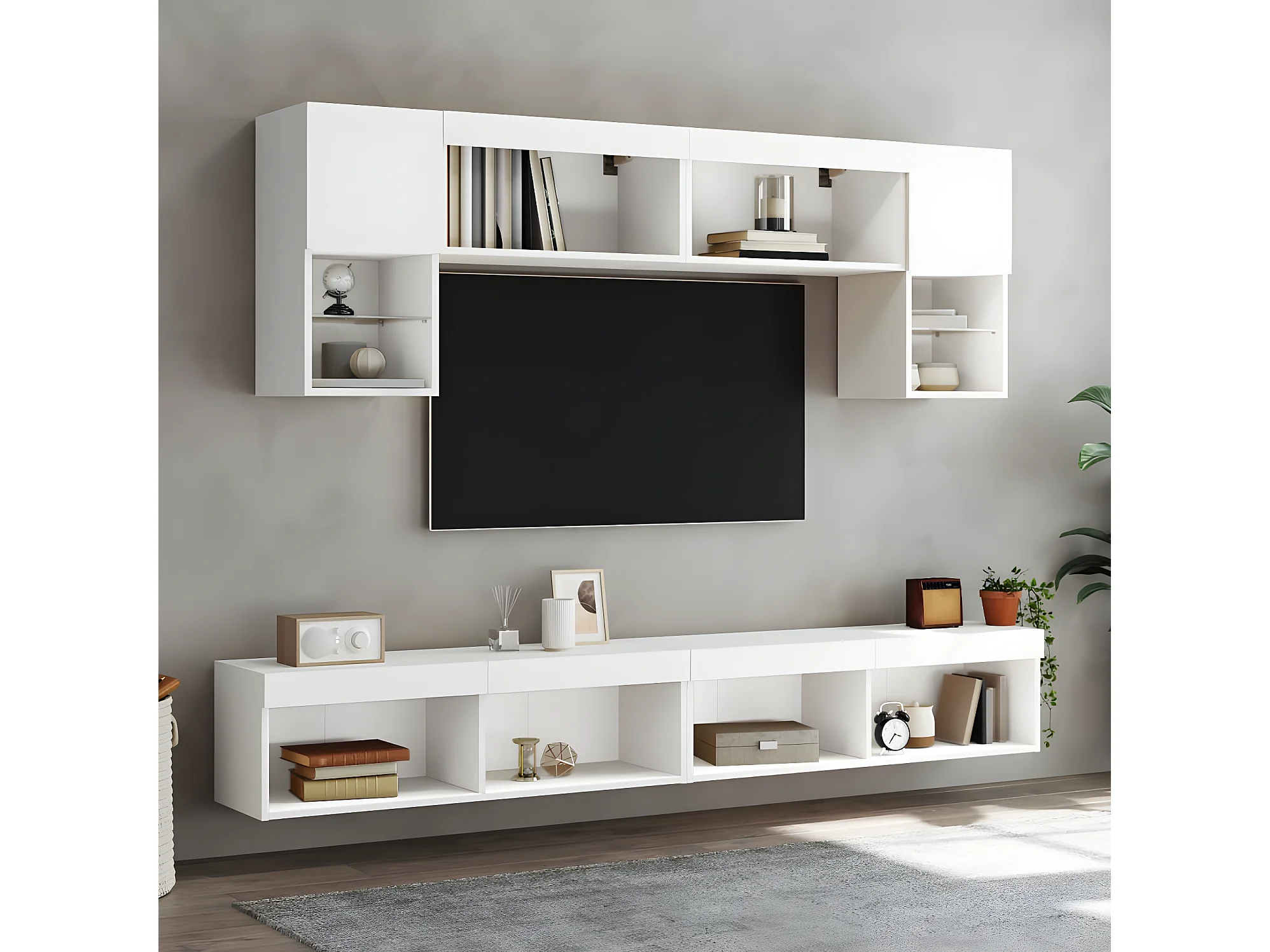 Ensemble de meuble TV avec LED 6 pcs blanc bois d'ingénierie WET5192
