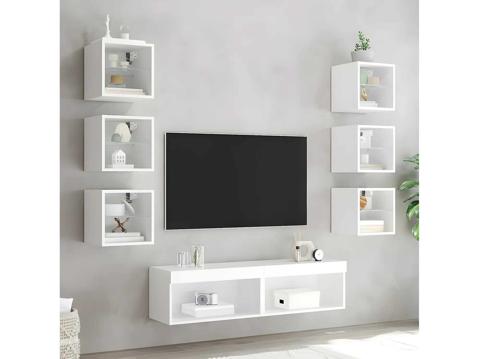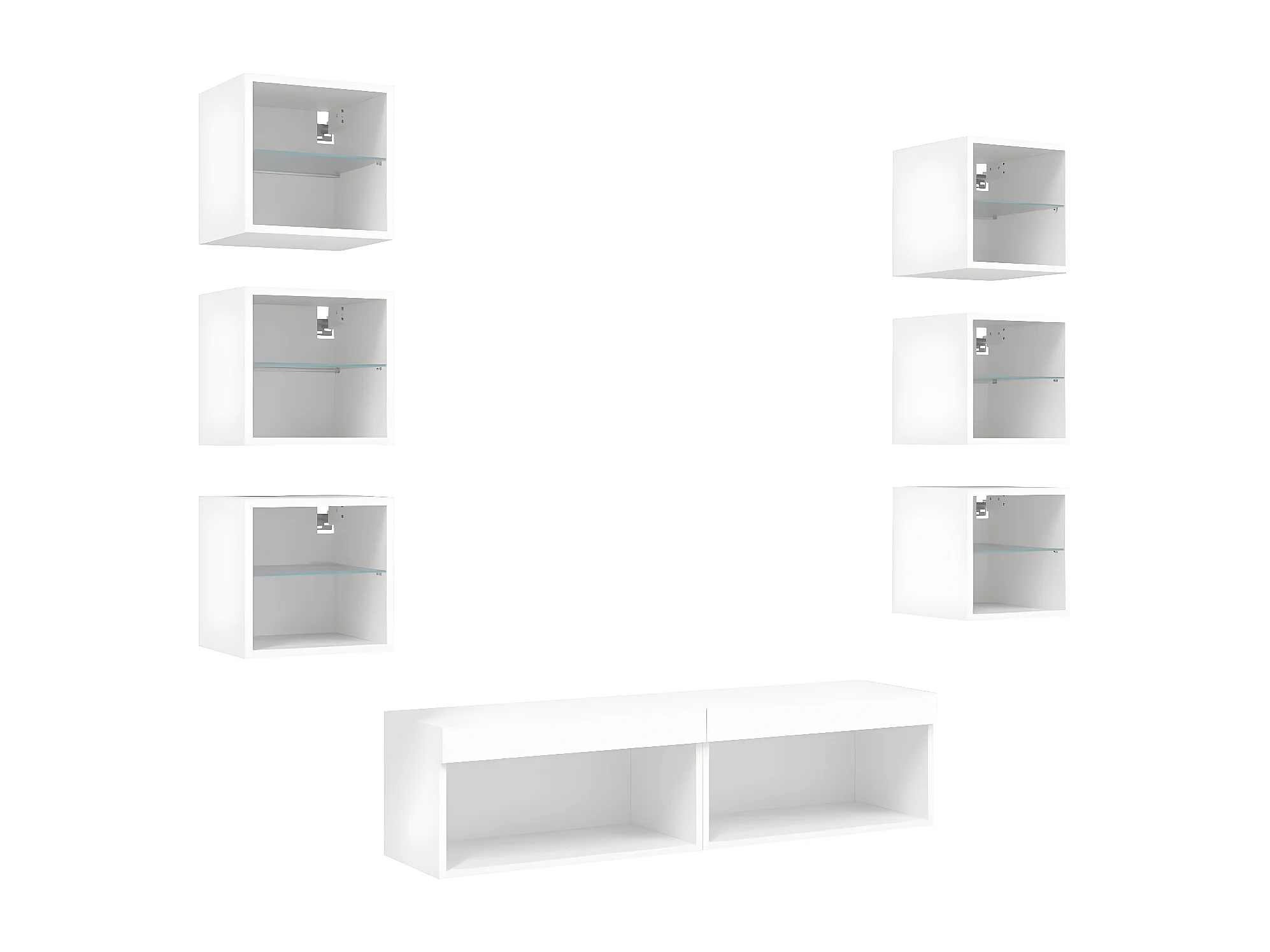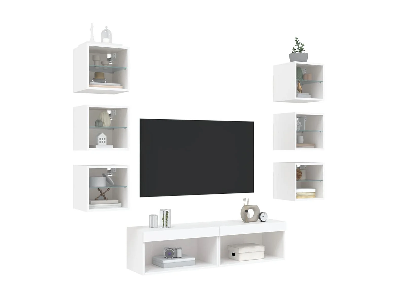Ensemble de meuble TV avec LED 8 pcs blanc bois d'ingénierie WET7318