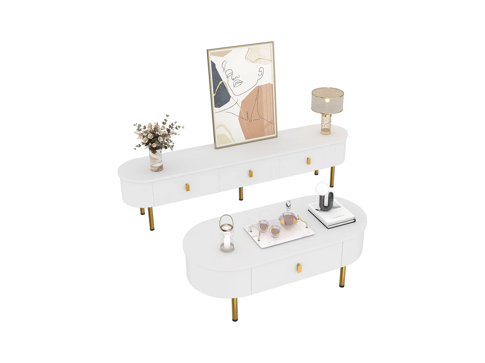 Ensemble de meuble TV de luxe léger et table basse - combinaison de salon - avec tiroirs - MDF - blanc
