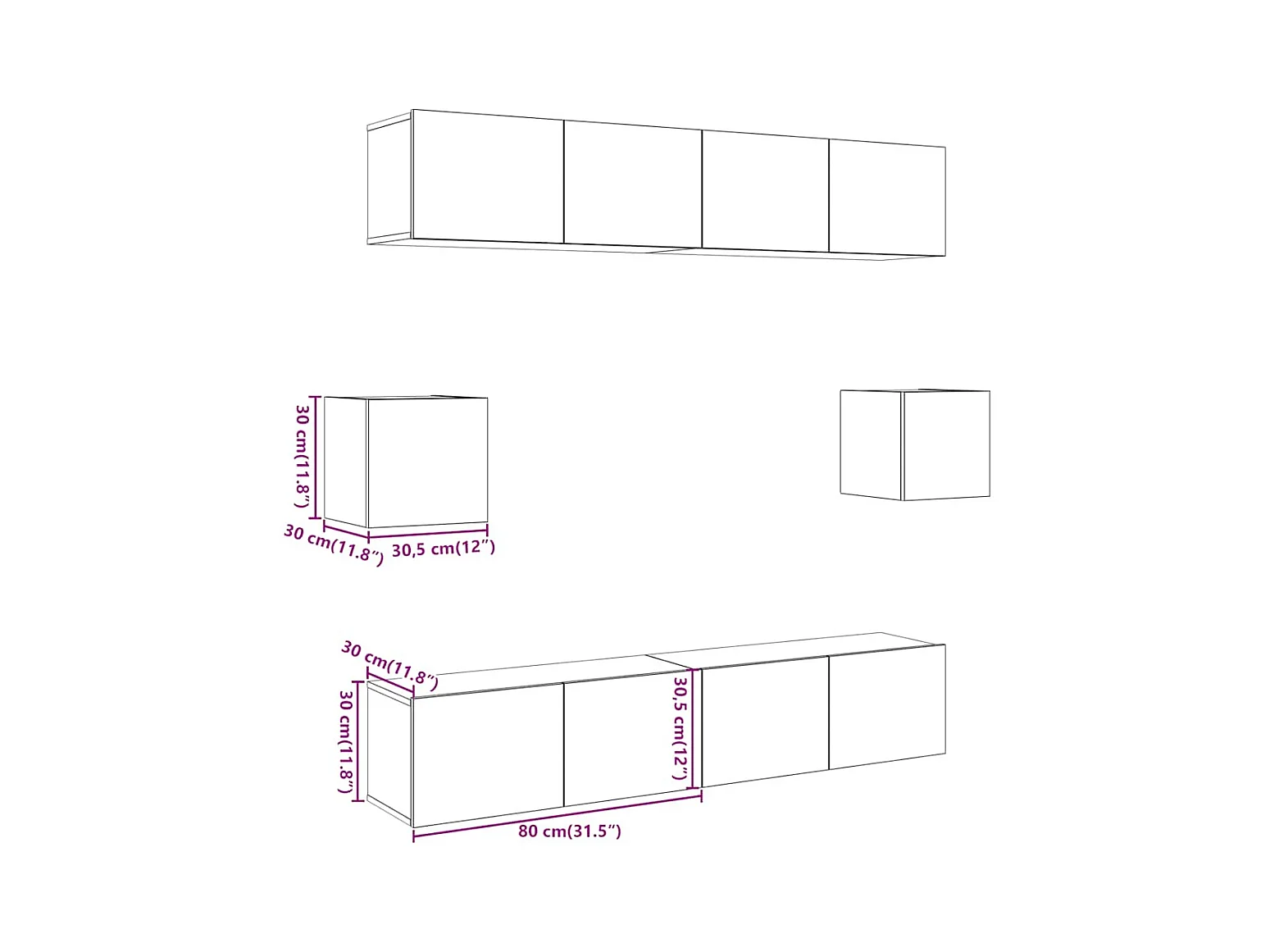Meubles TV 4 pcs Chêne sonoma 80x30x30 cm Bois d'ingénierie