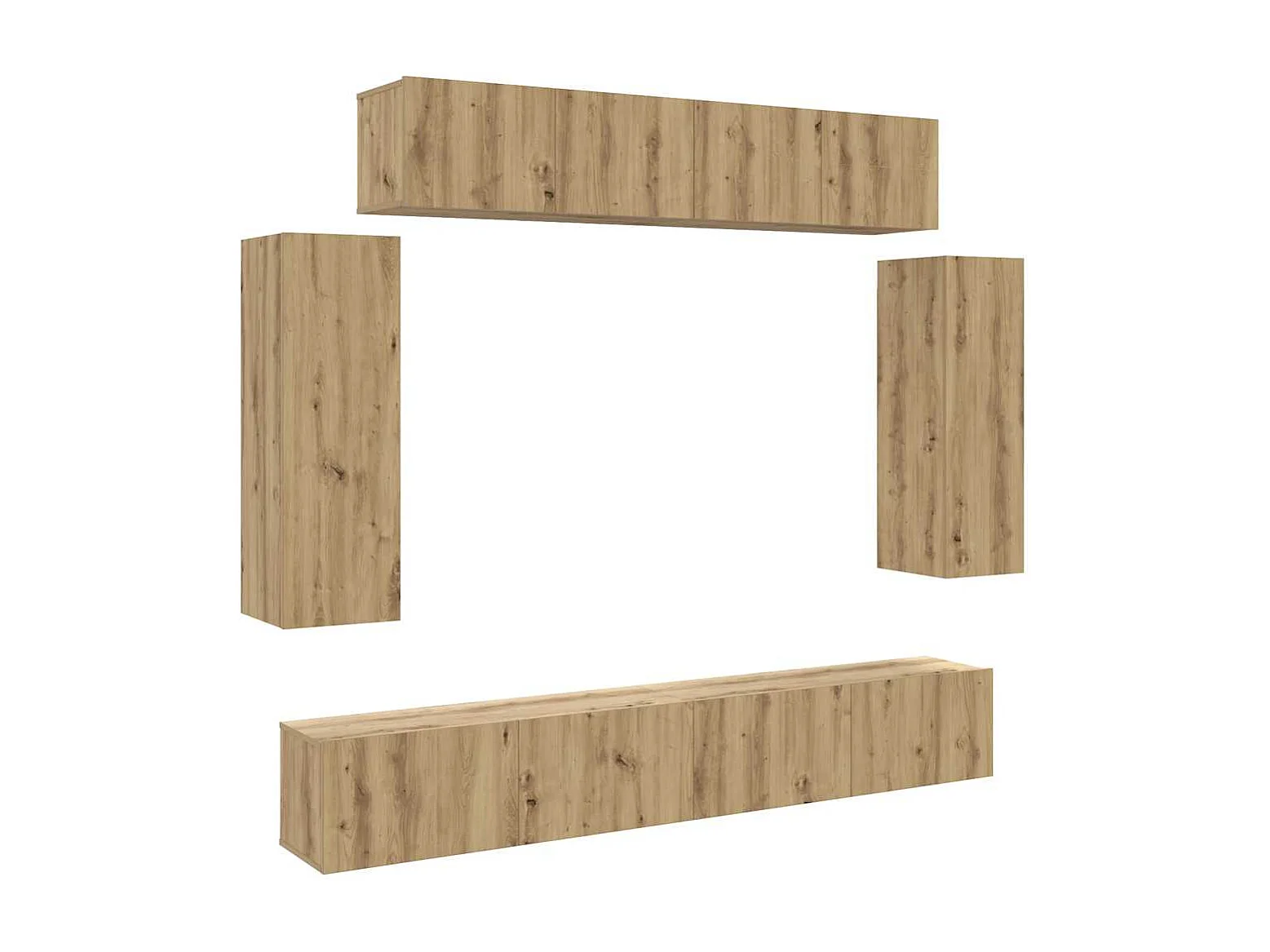 Ensemble de meuble TV mural 6 pièces chêne artisanal