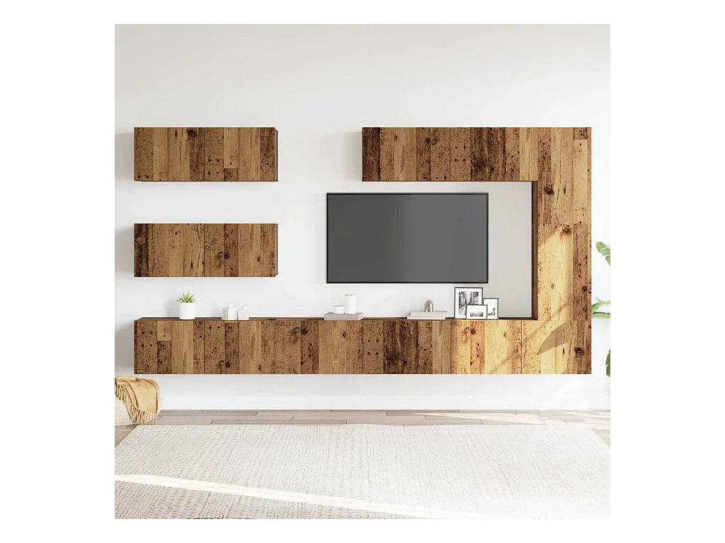 Ensemble de meuble TV mural 7 pièces vieux bois bois d'ingénierie