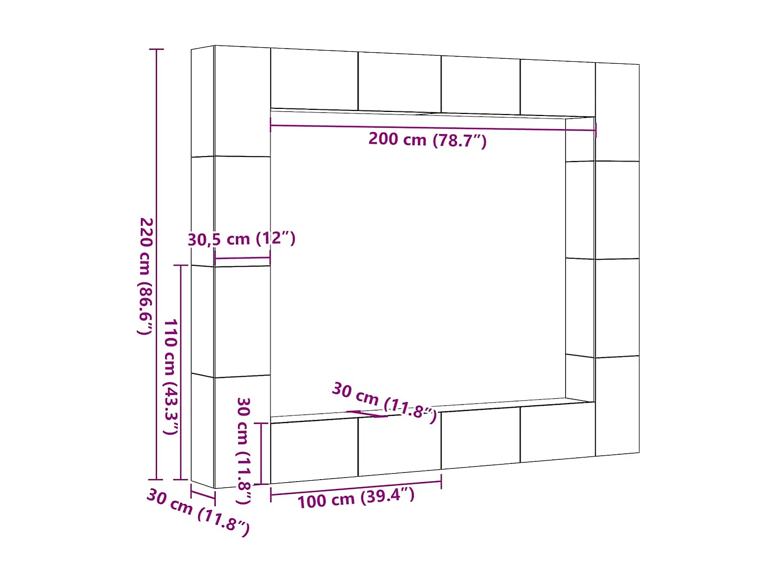 Ensemble de meuble TV mural 8 pièces vieux bois bois d'ingénierie