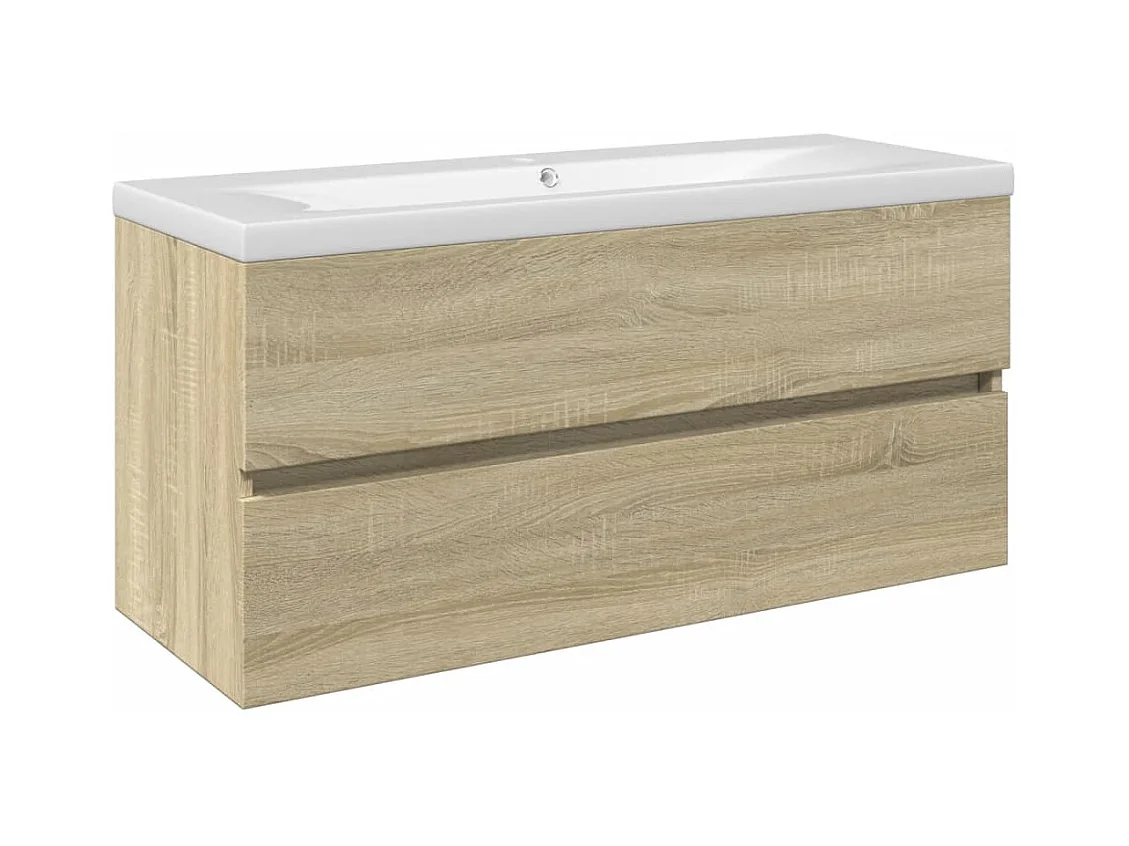Ensemble de meubles de bain 2pcs céramique et bois d'ingénierie