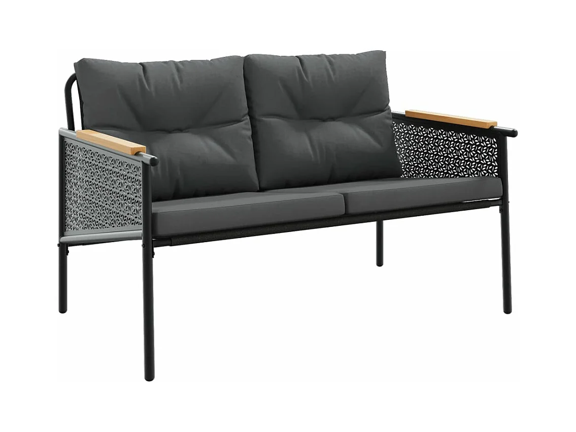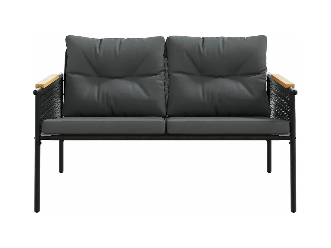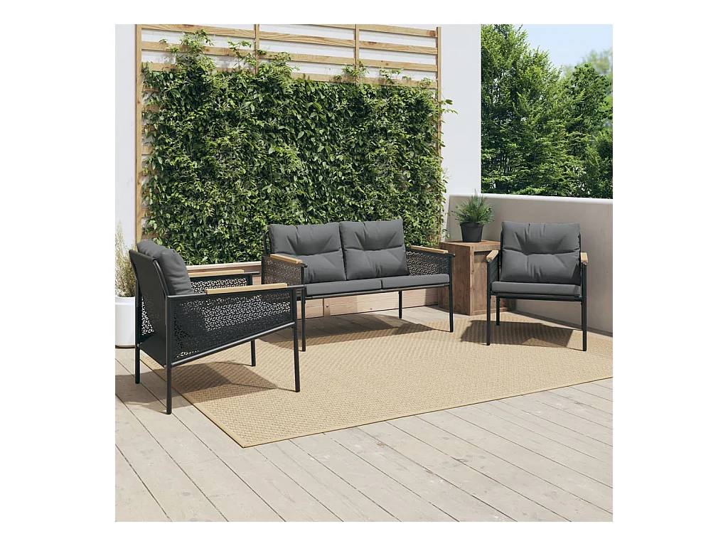 Ensemble de meubles de balcon avec coussins 3 pièces noir acier