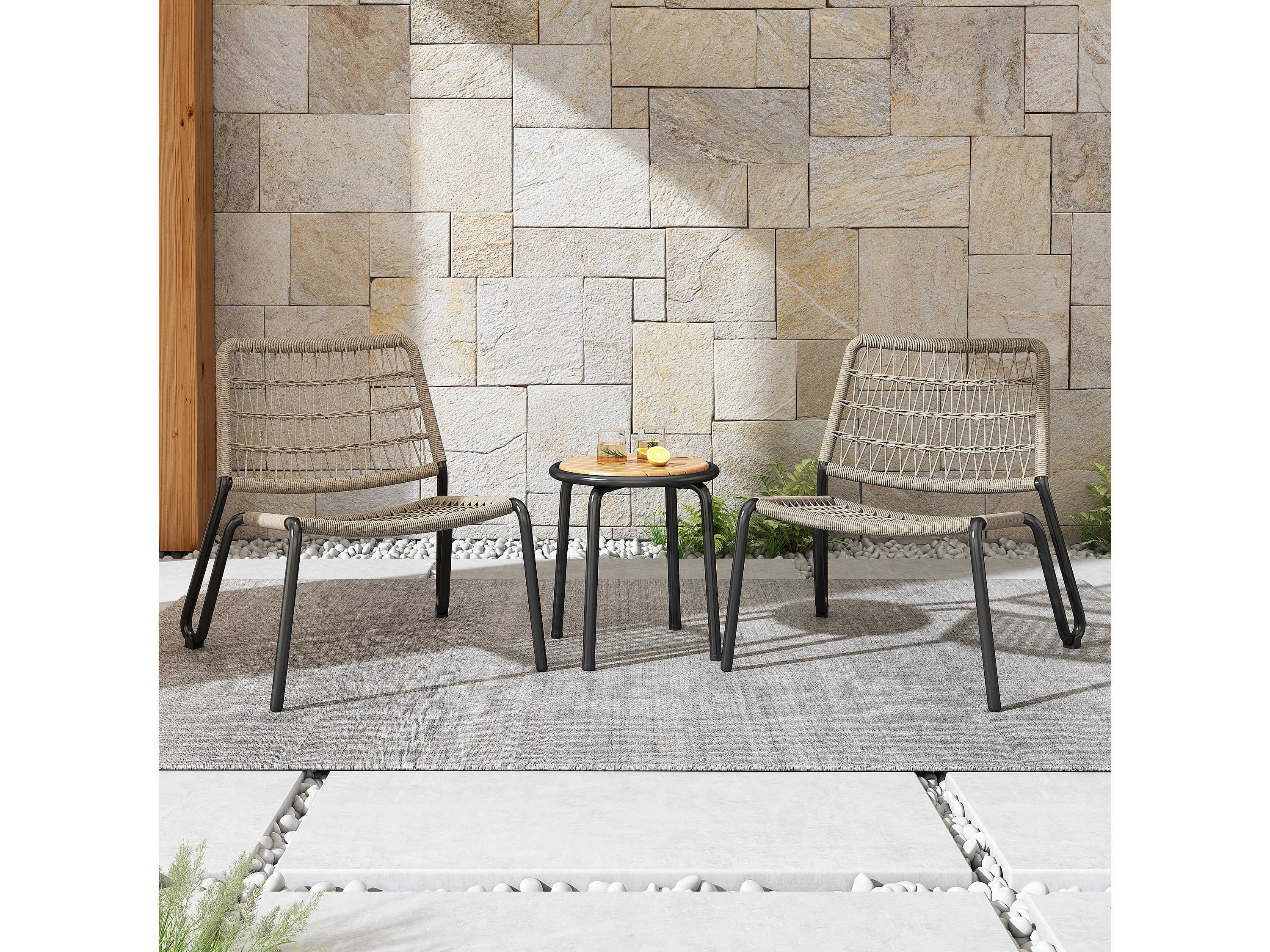 Ensemble de meubles de balcon, en acier galvanisé et corde tressée à la main, plateau de table en bois massif, beige