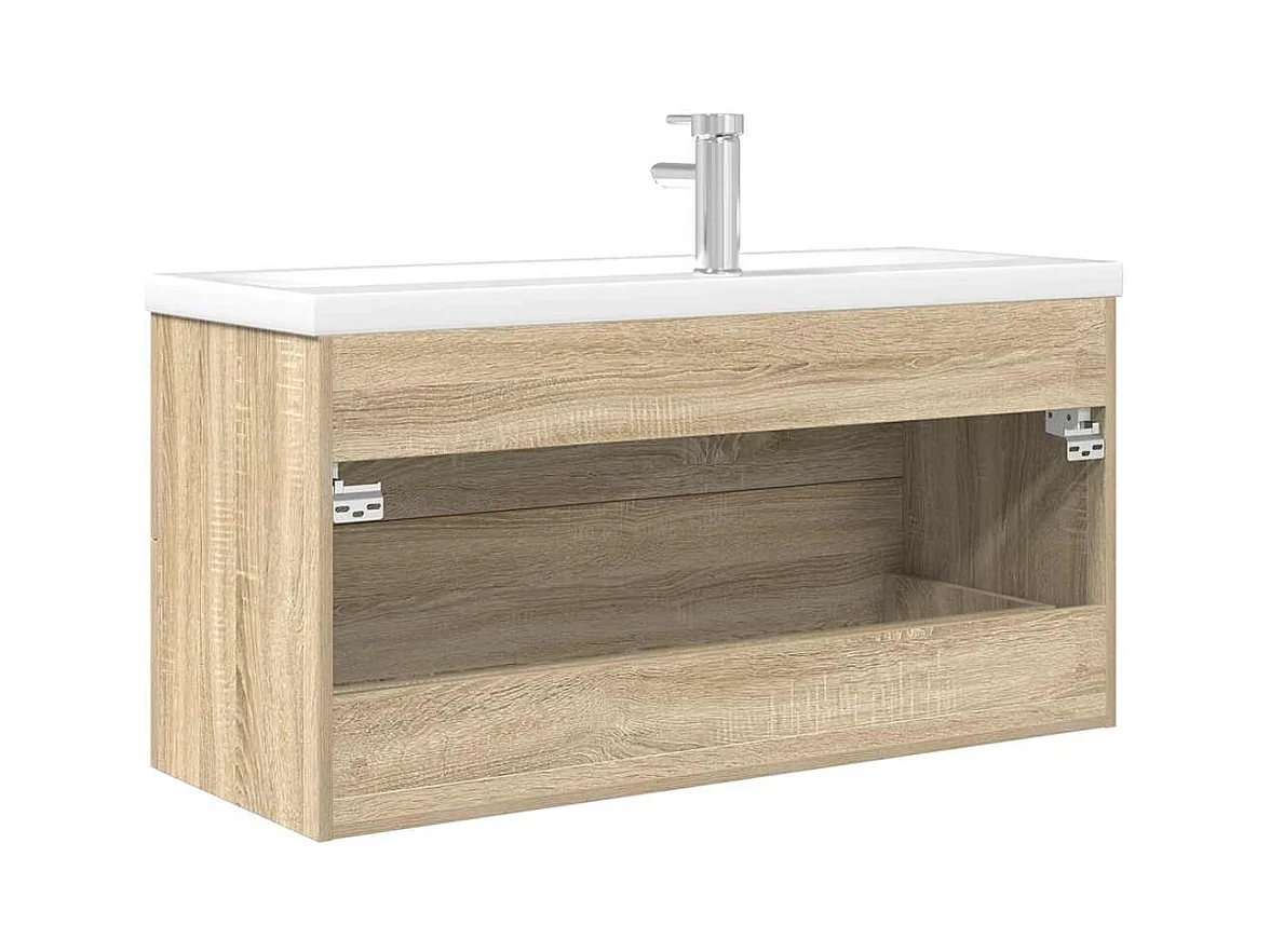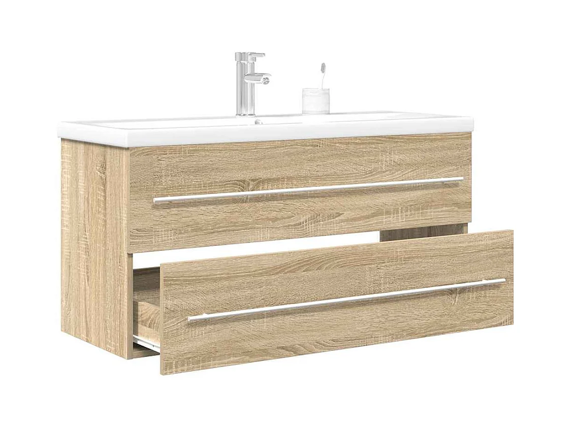 Ensemble de meubles de bain 2pcs céramique et bois d'ingénierie