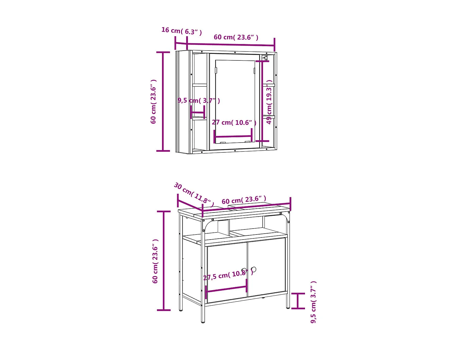 Ensemble d'armoires de salle de bain 2 pcs chêne fumé