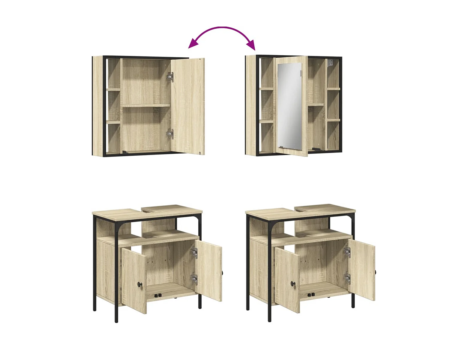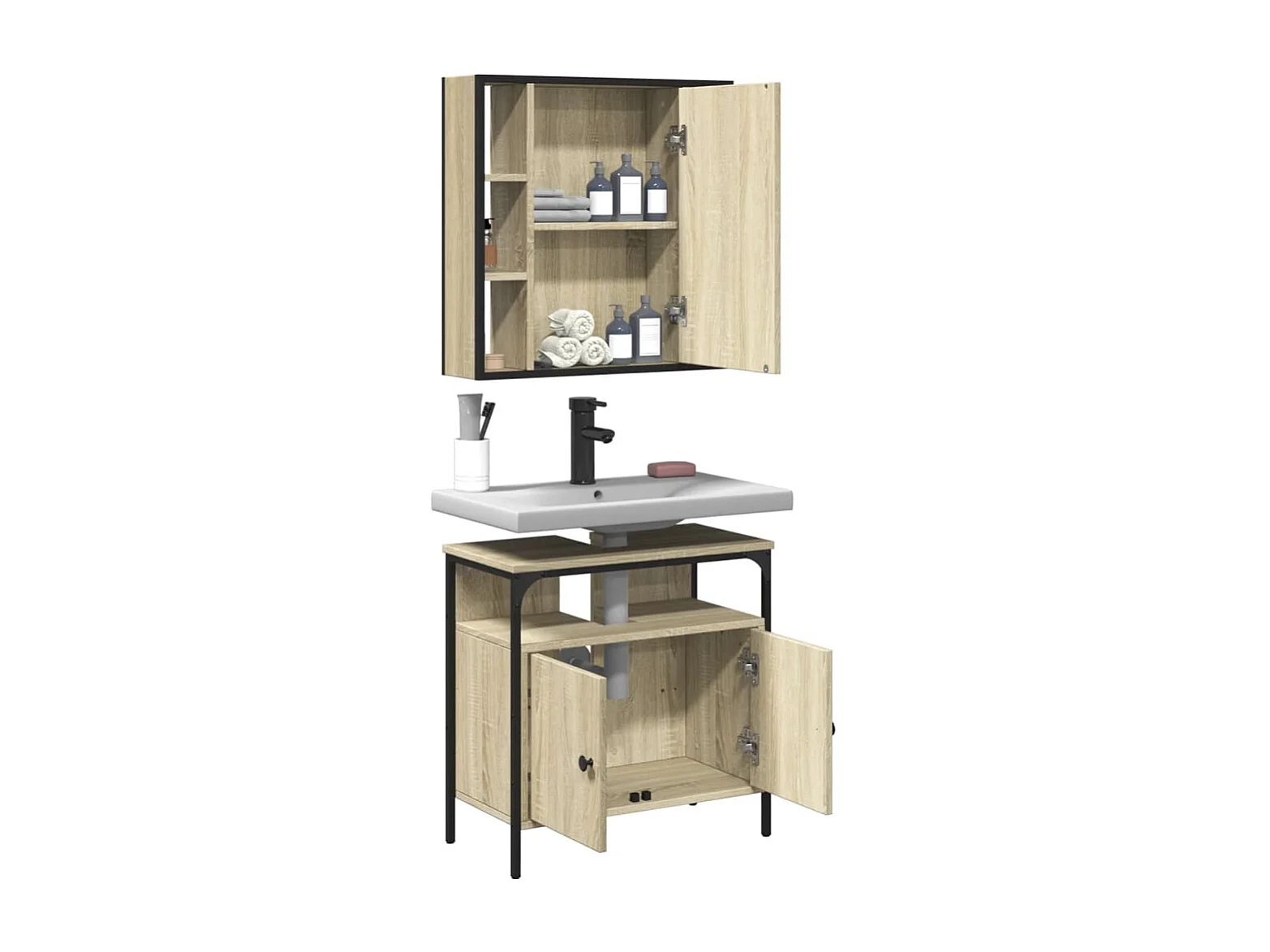 Ensemble d'armoires de salle de bain 3 pcs chêne sonoma