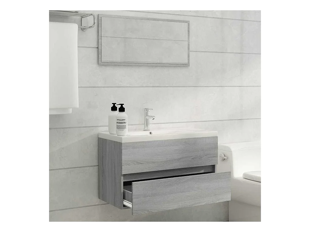 Ensemble de meubles de salle de bain 2 pcs Sonoma gris