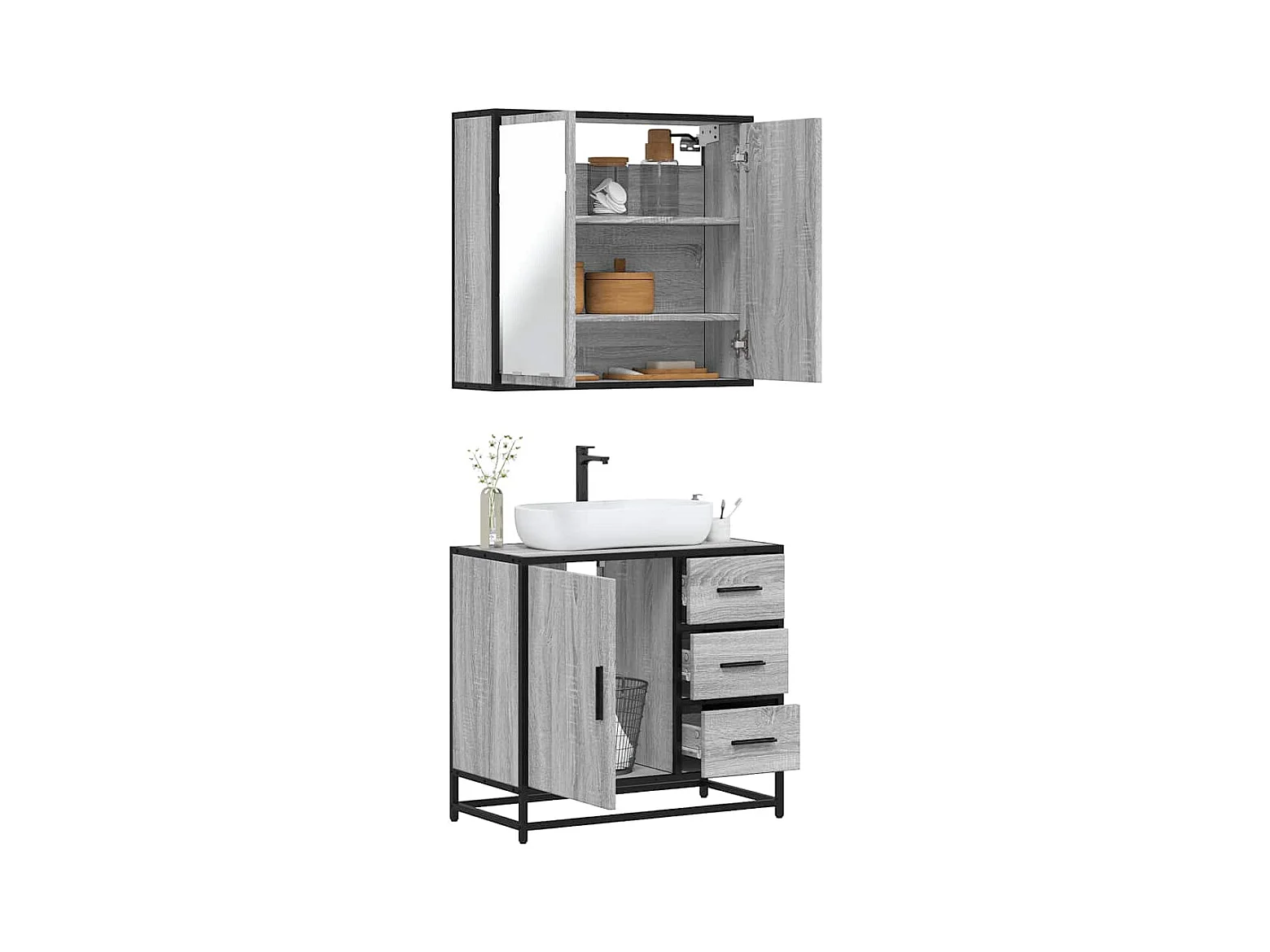 Ensemble de meubles de salle de bain 2 pcs Sonoma gris