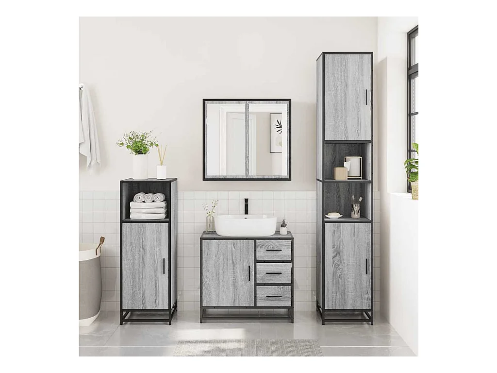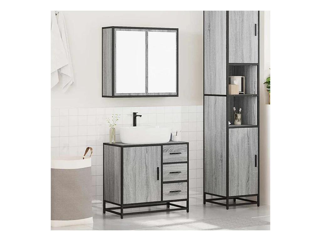 Ensemble de meubles de salle de bain 3 pcs Sonoma gris