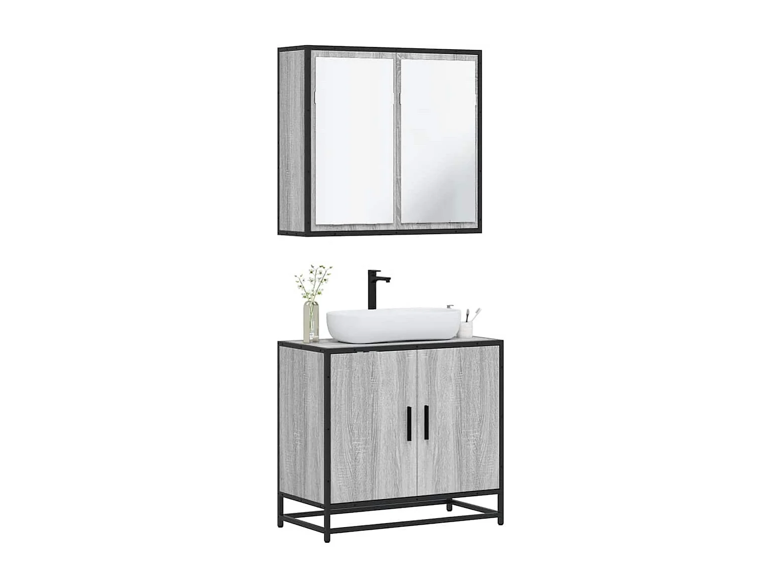 Ensemble de meubles de salle de bain 2 pcs Sonoma gris