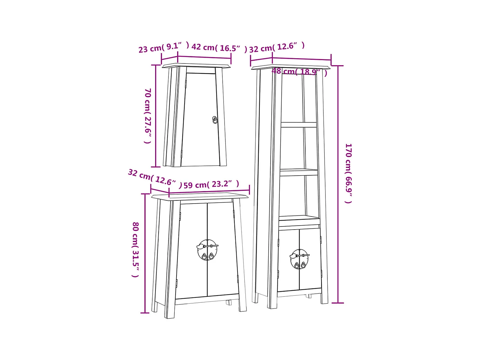Ensemble de meubles de salle de bain 3 pcs bois de pin massif