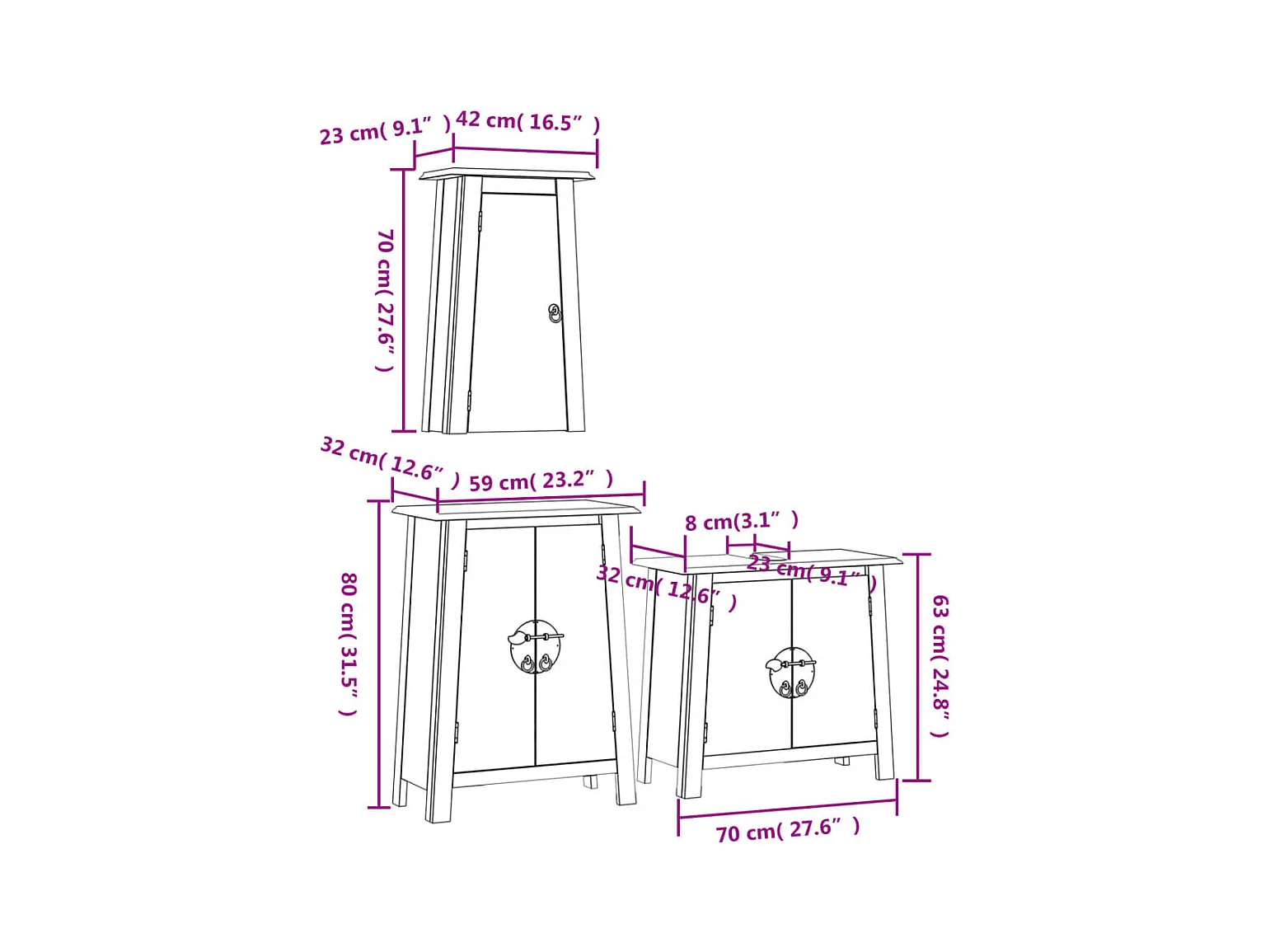 Ensemble de meubles de salle de bain 3 pcs bois de pin massif