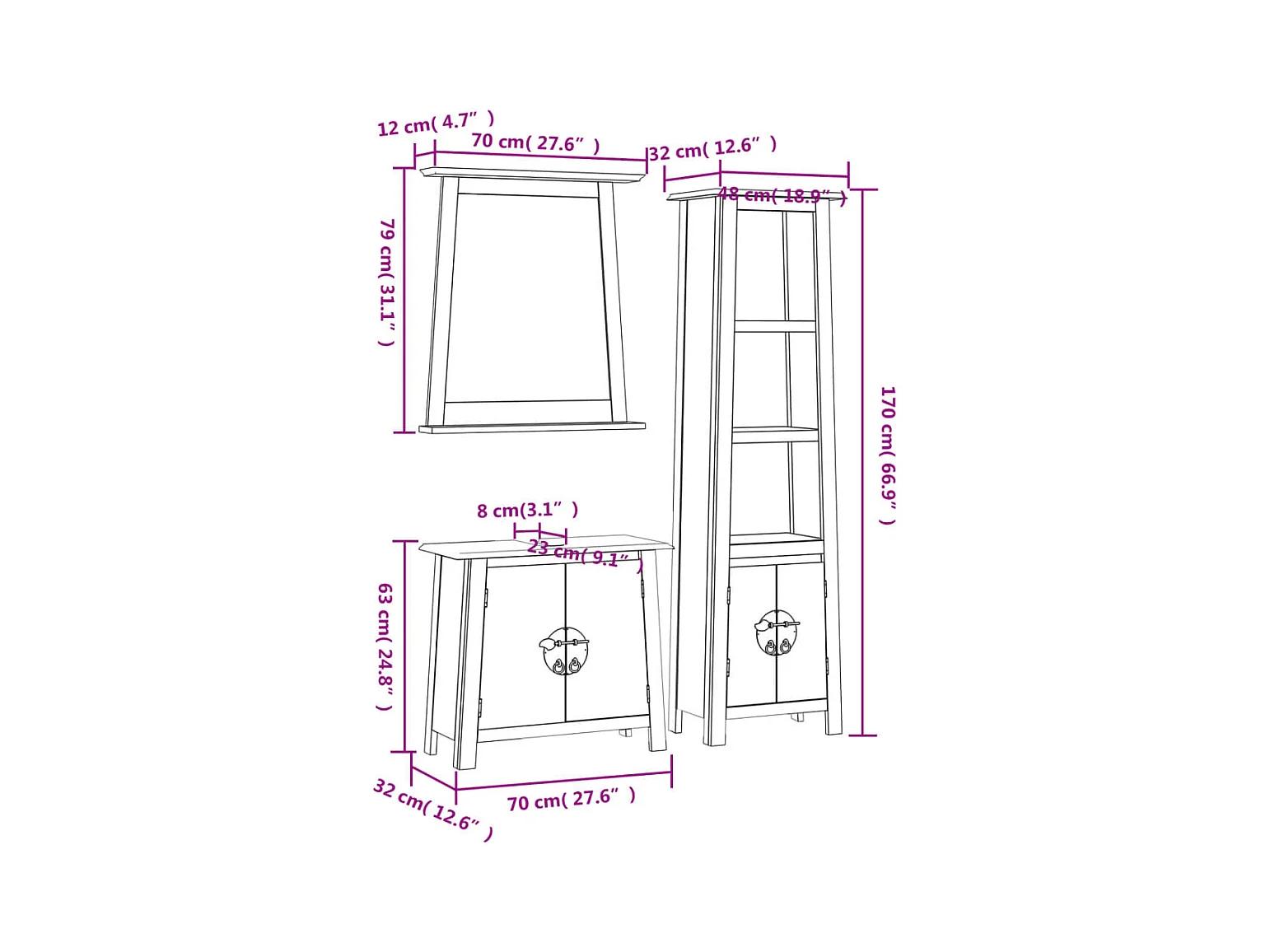 Ensemble de meubles de salle de bain 3 pcs bois de pin massif