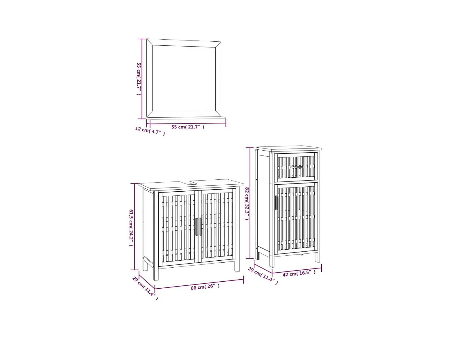 Ensemble de meubles de salle de bain 3 pcs Bois massif de noyer