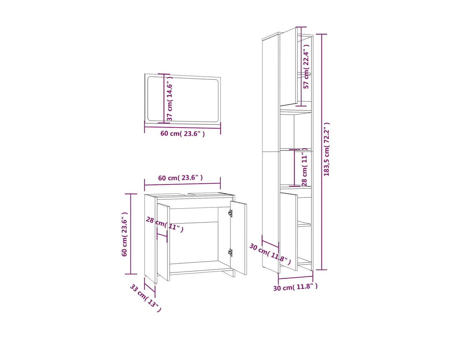 Ensemble d'armoires de salle de bain 3 pcs chêne fumé