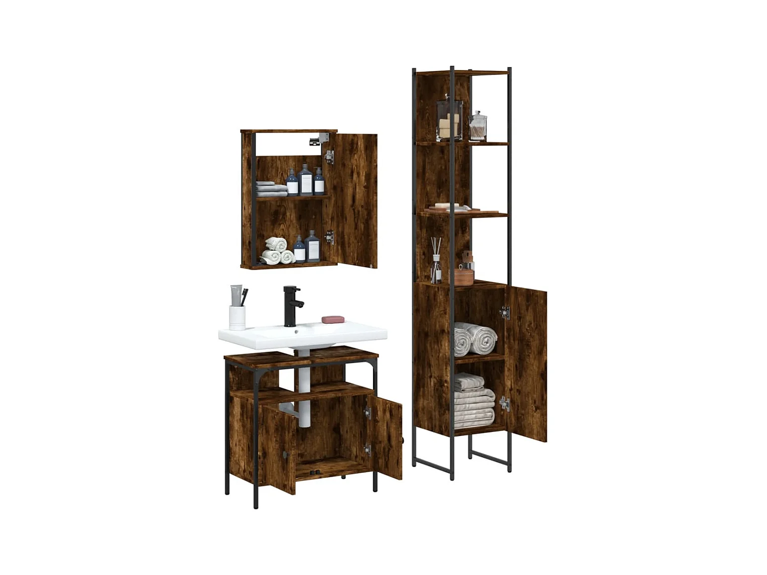 Ensemble de meubles de salle de bain 3 pcs Chêne fumé