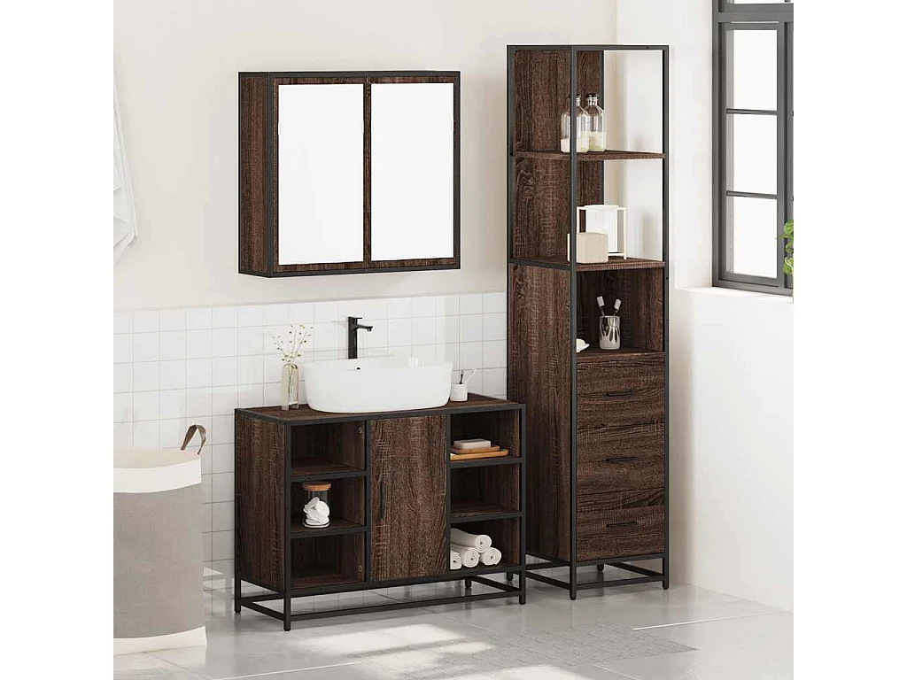Ensemble de meubles de salle de bain 3 pcs chêne marron