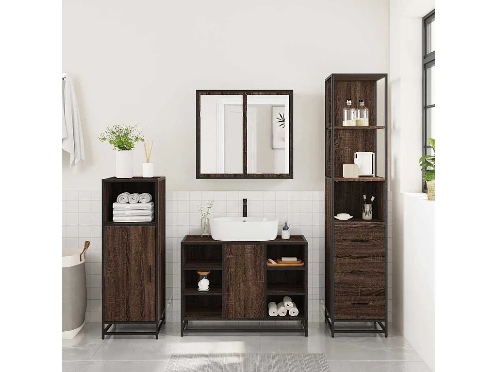Ensemble de meubles de salle de bain 4 pcs chêne marron