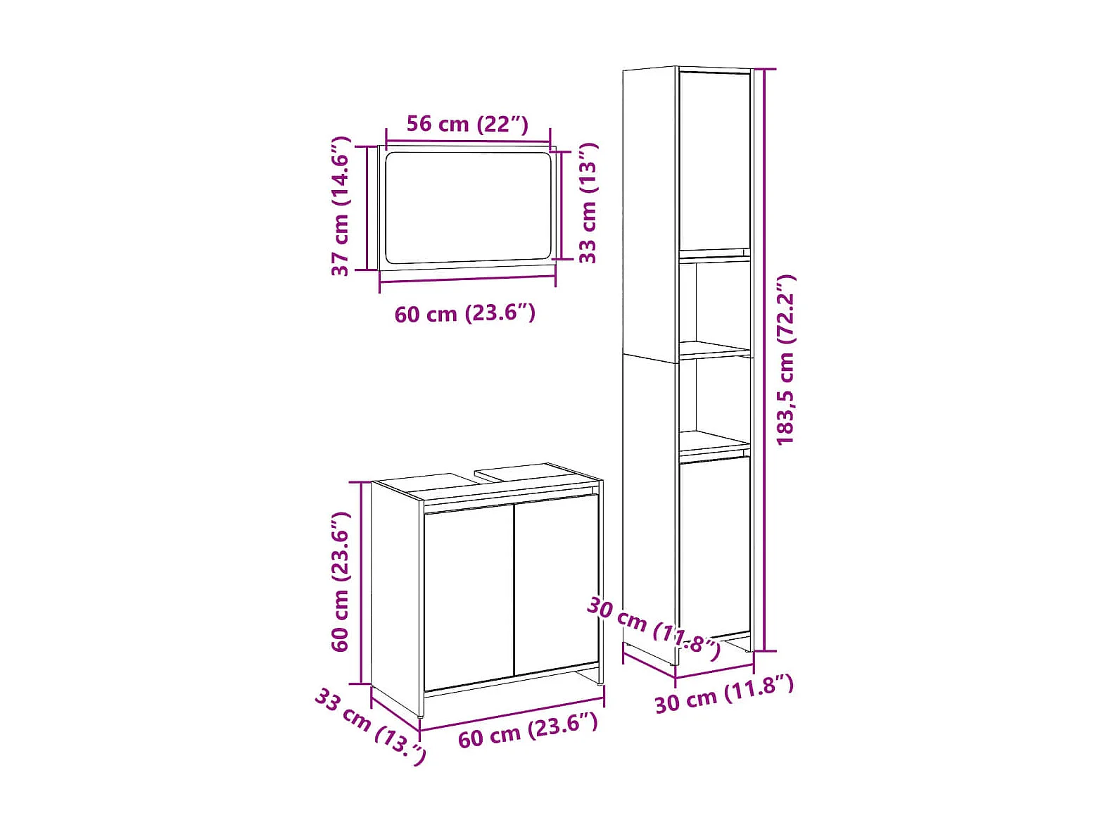 Ensemble de meubles de salle de bain 3 pcs chêne sonoma