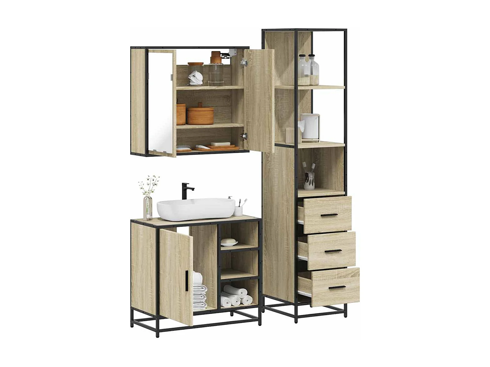 Ensemble de meubles de salle de bain 3 pcs chêne sonoma