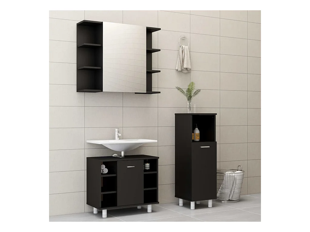 Ensemble de meubles de salle de bain Noir Aggloméré