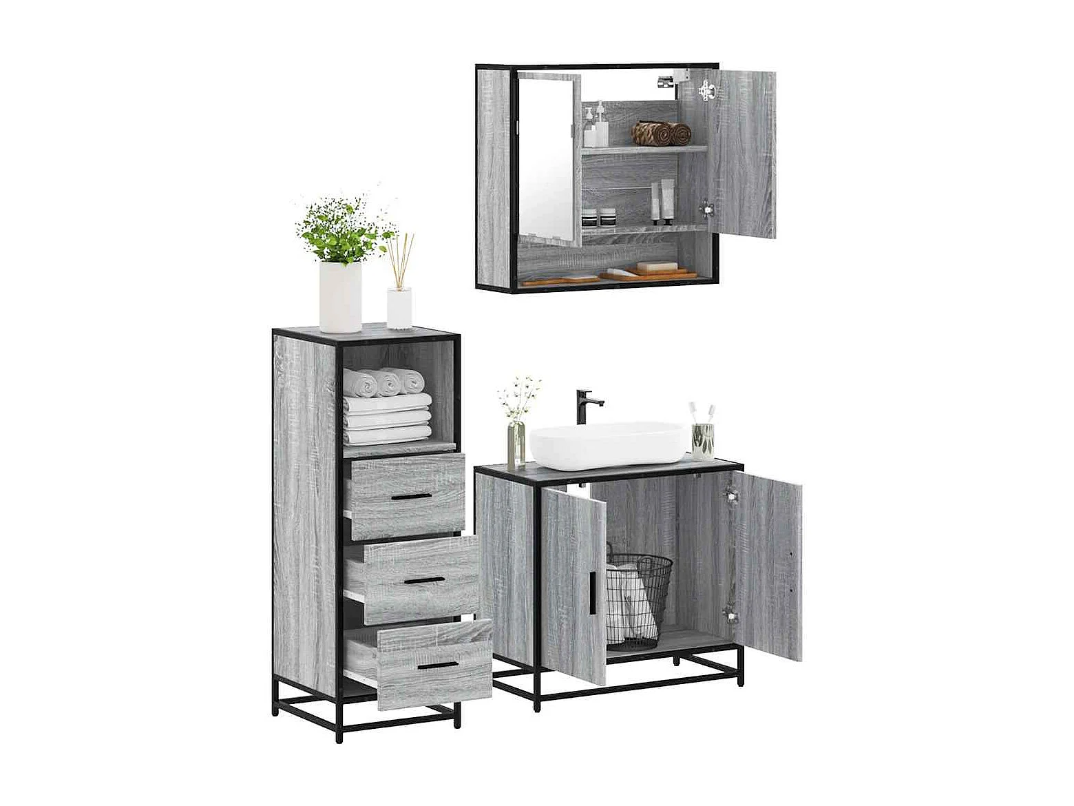 Ensemble de meubles de salle de bain 3 pcs Sonoma gris