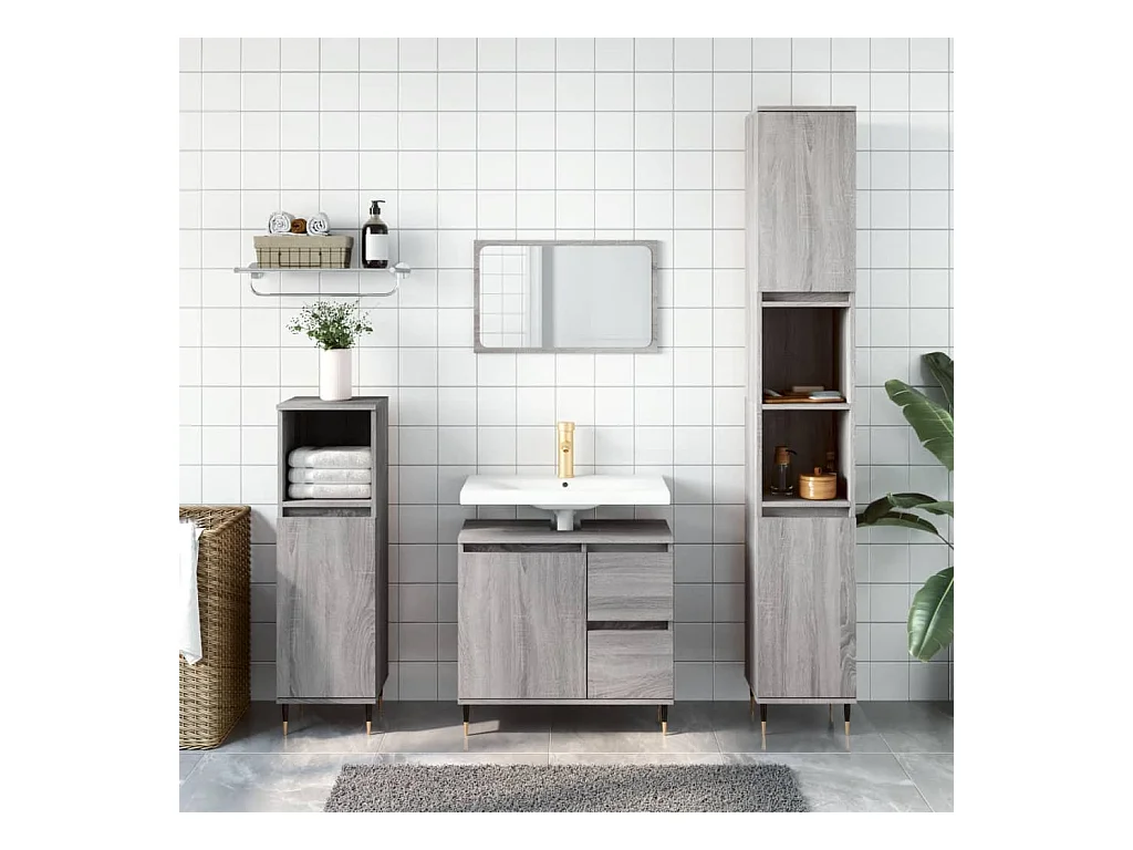 Ensemble de meubles de salle de bain 3 pcs Sonoma gris