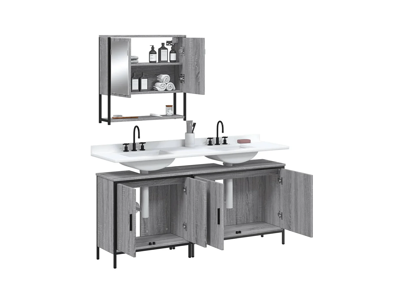 Ensemble d'armoires de salle de bain 4 pcs sonoma gris