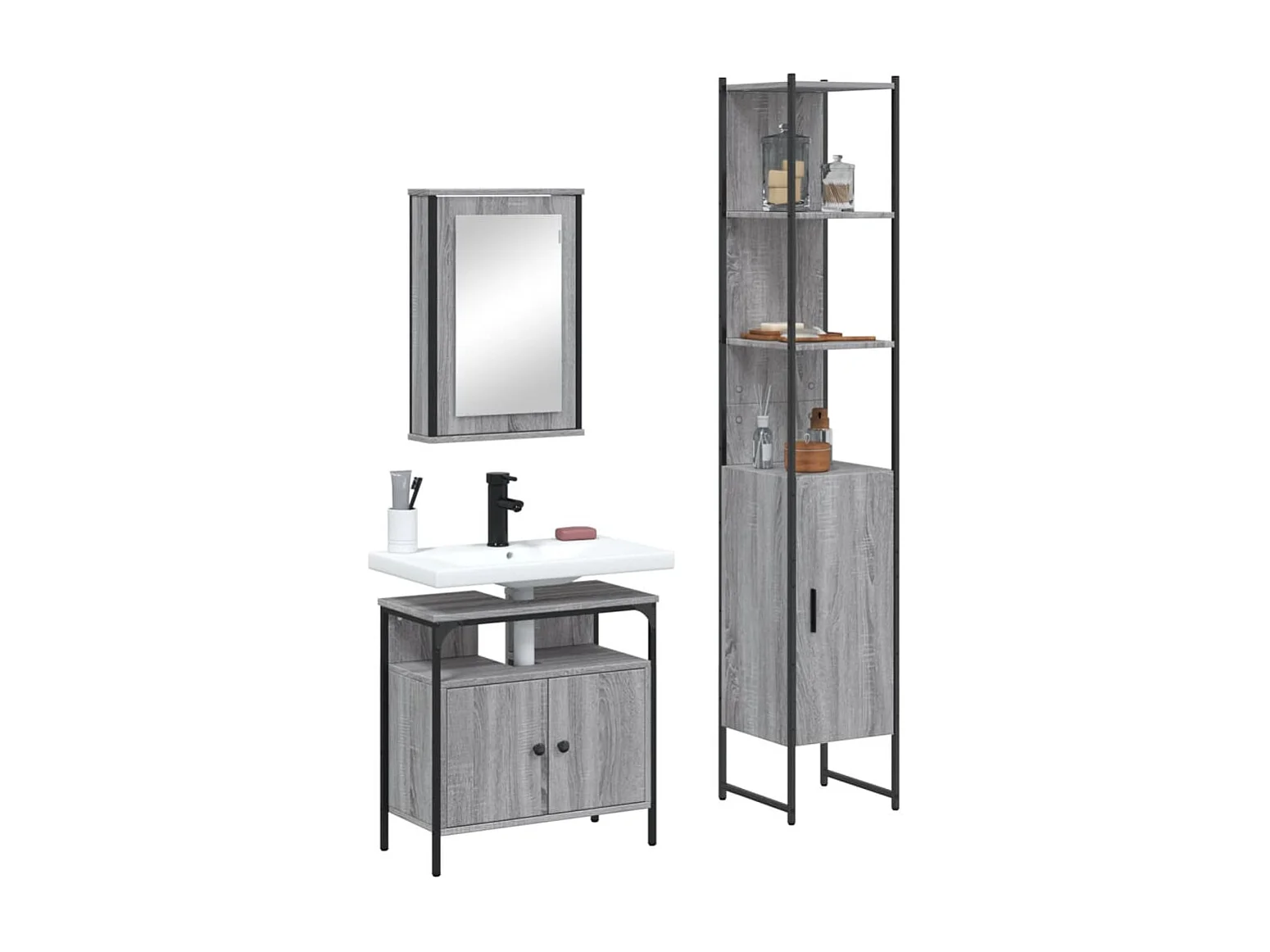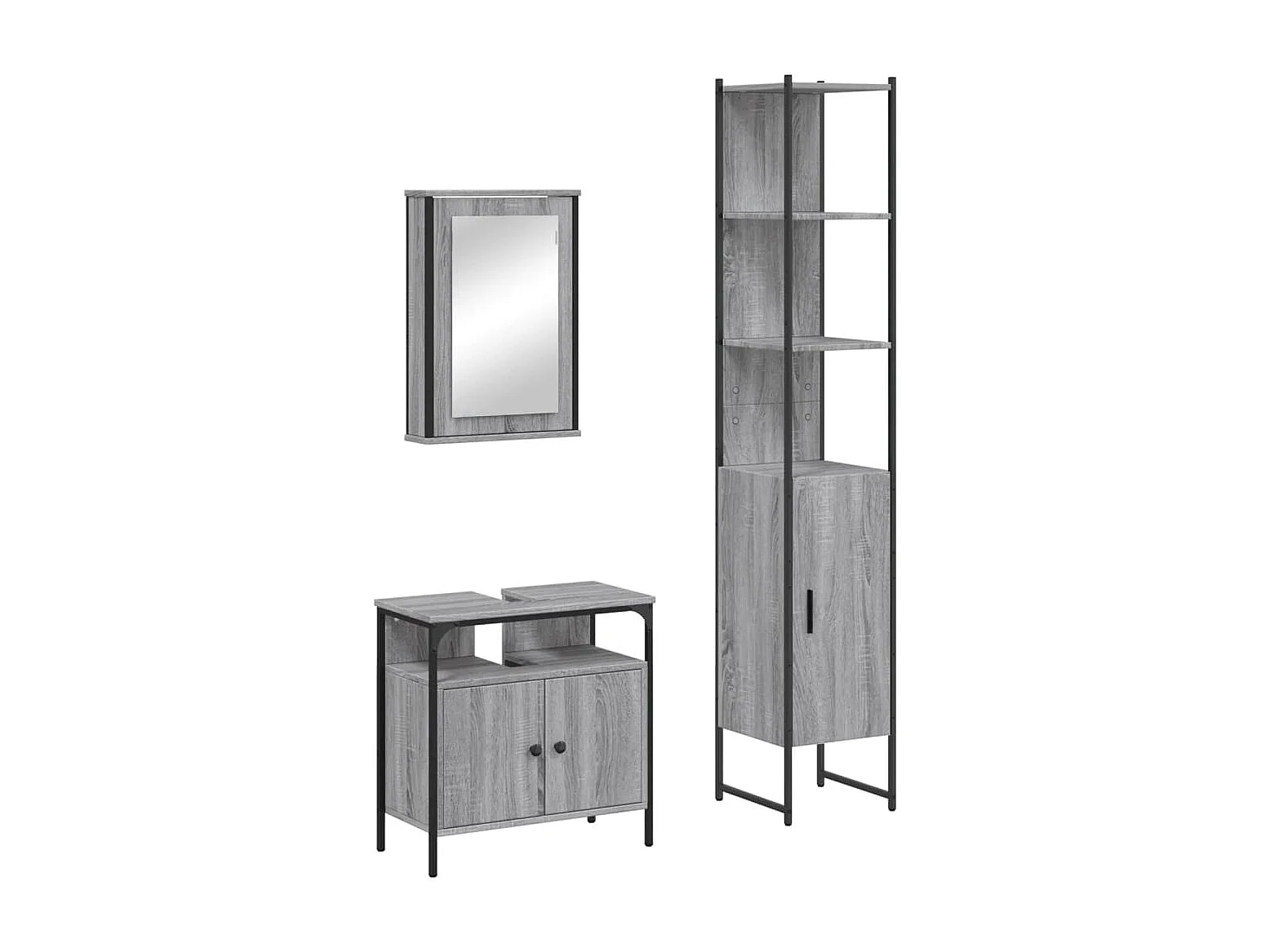 Ensemble de meubles de salle de bain 3 pcs Sonoma gris