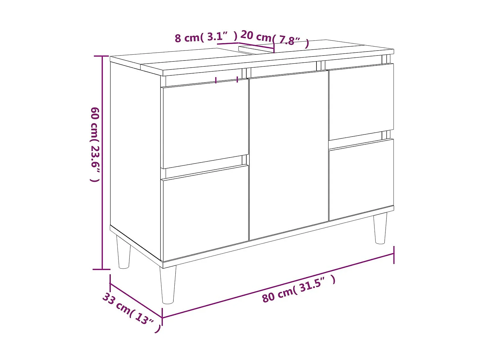 Ensemble de meubles de salle de bain 3 pcs Sonoma gris