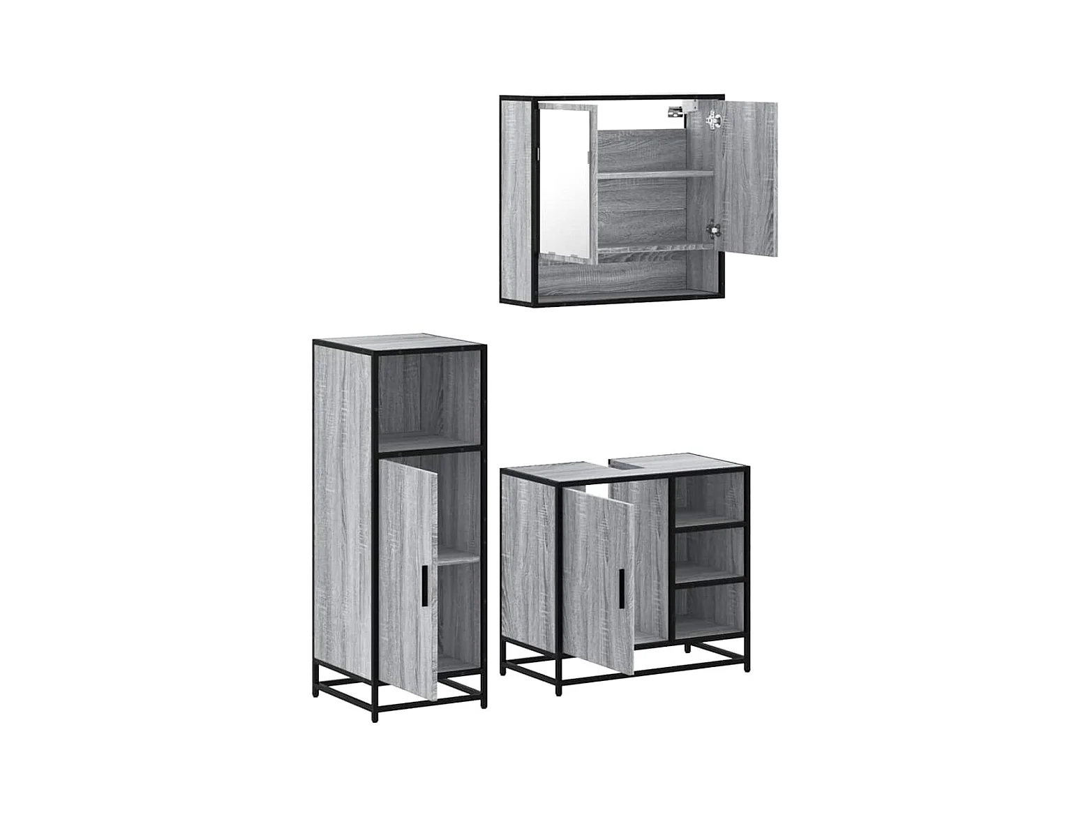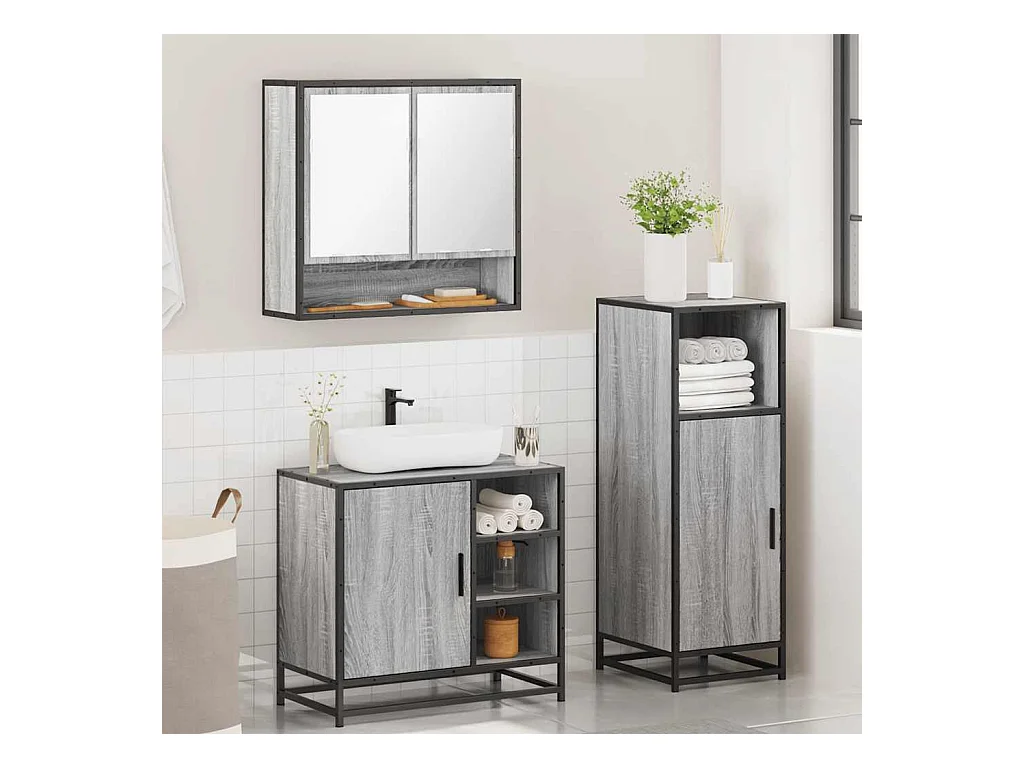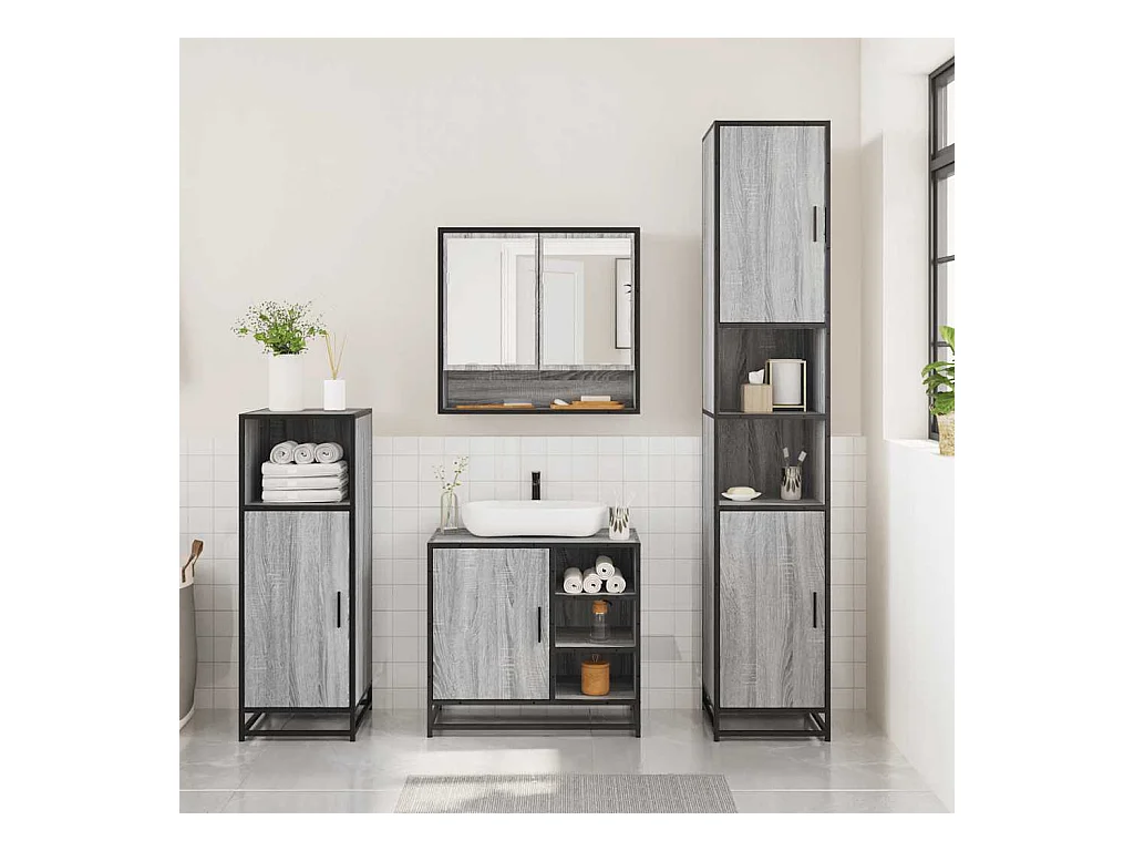 Ensemble de meubles de salle de bain 3 pcs Sonoma gris