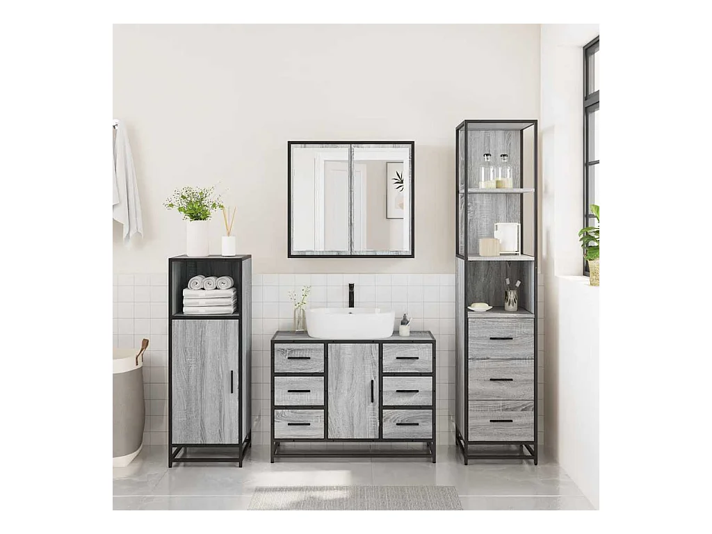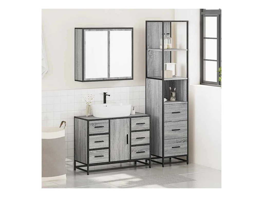 Ensemble de meubles de salle de bain 3 pcs Sonoma gris