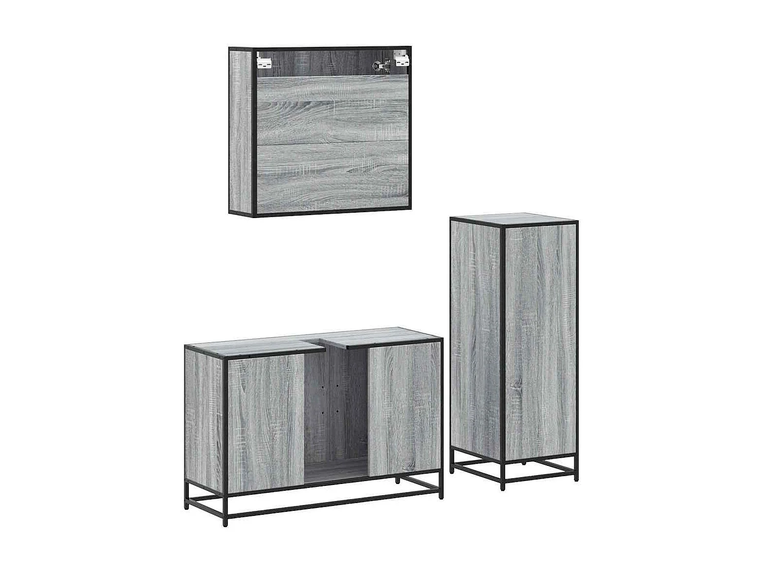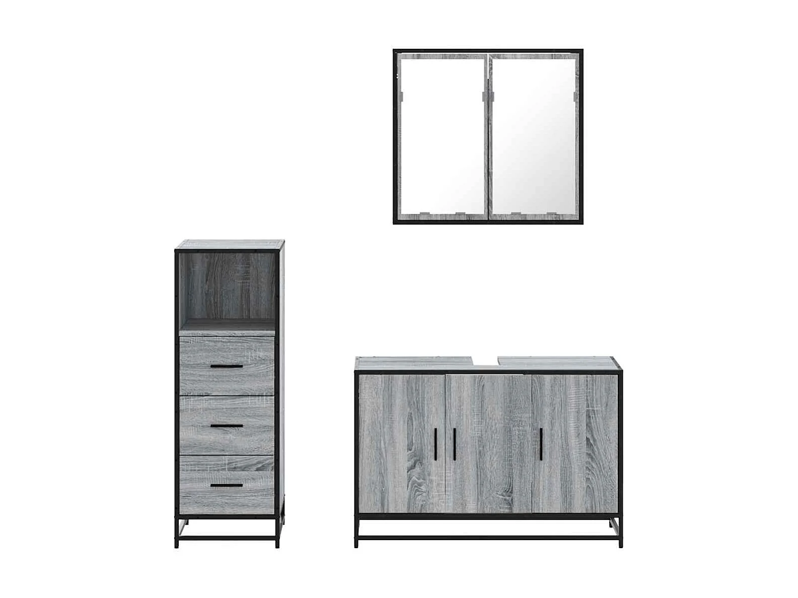 Ensemble de meubles de salle de bain 3 pcs Sonoma gris