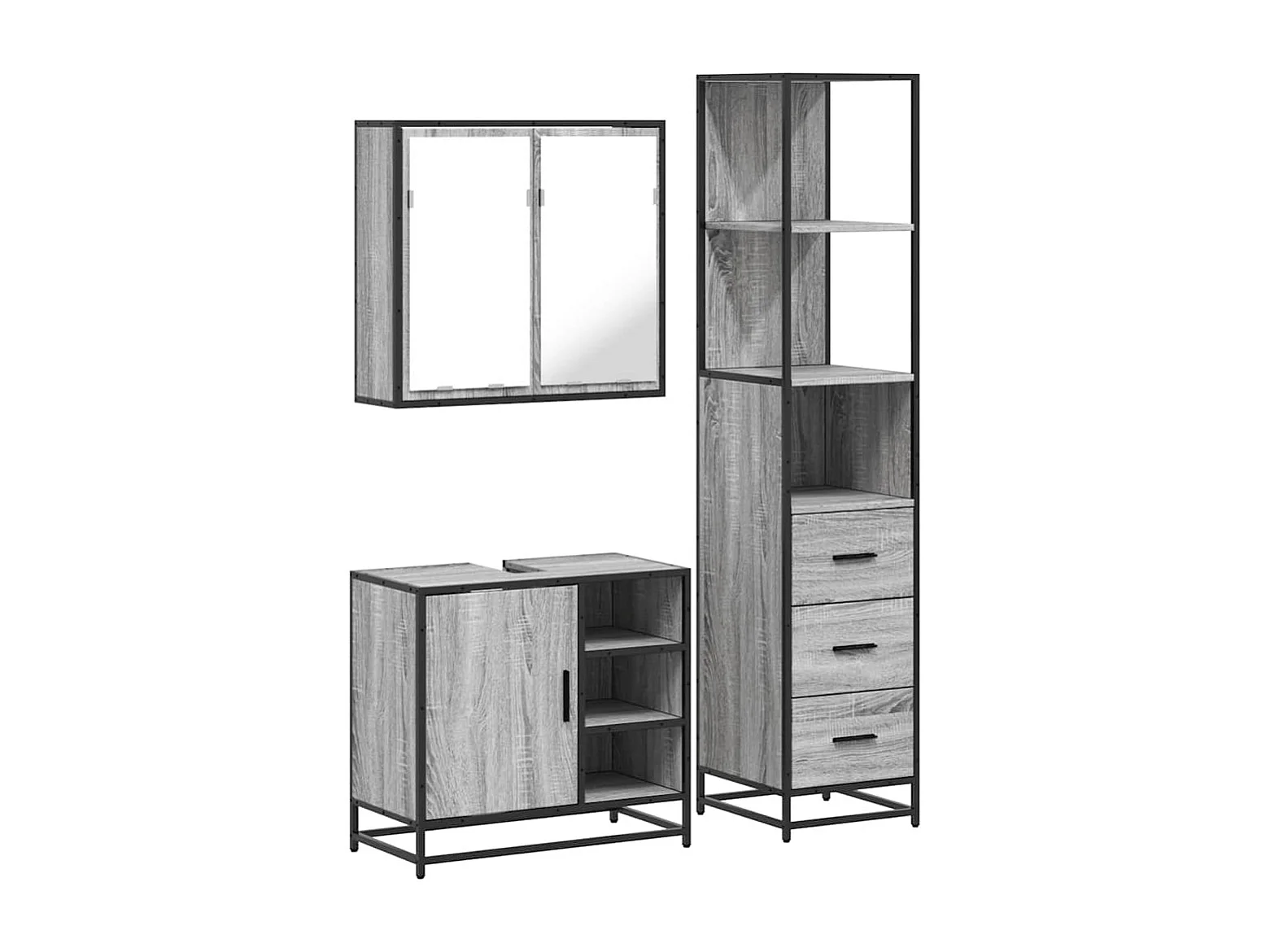 Ensemble de meubles de salle de bain 3 pcs Sonoma gris