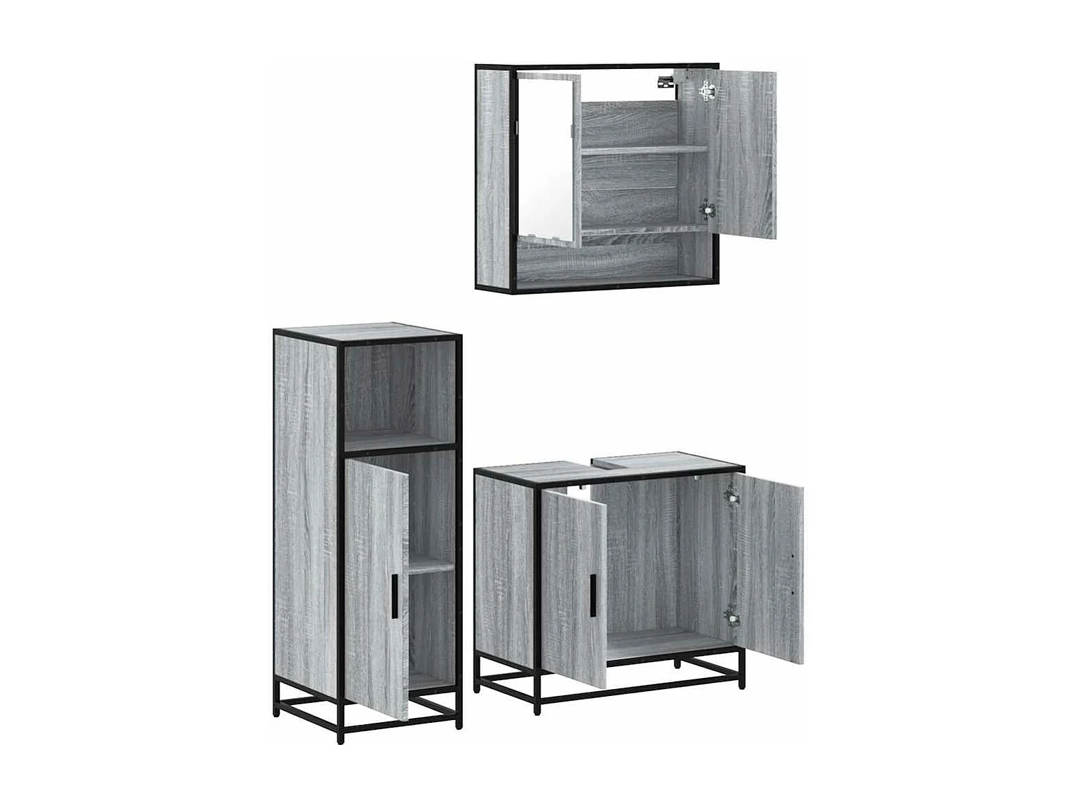 Ensemble de meubles de salle de bain 3 pcs Sonoma gris