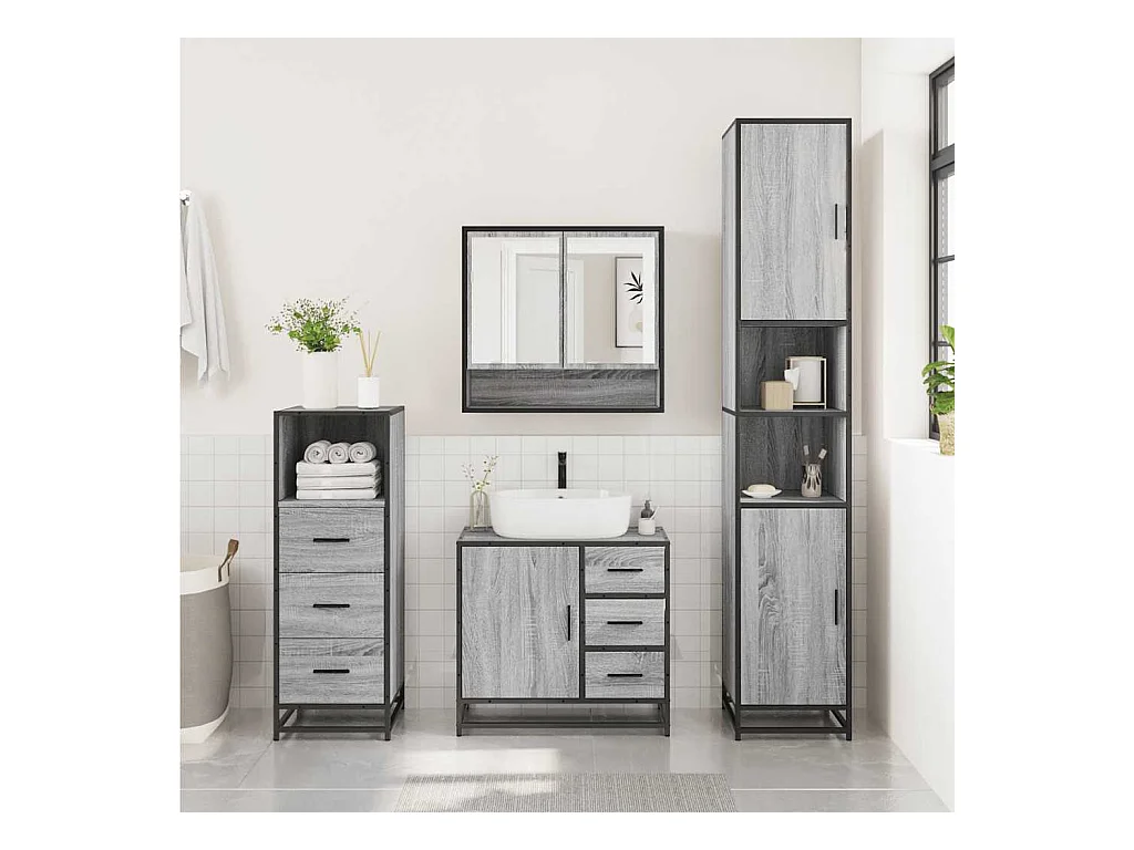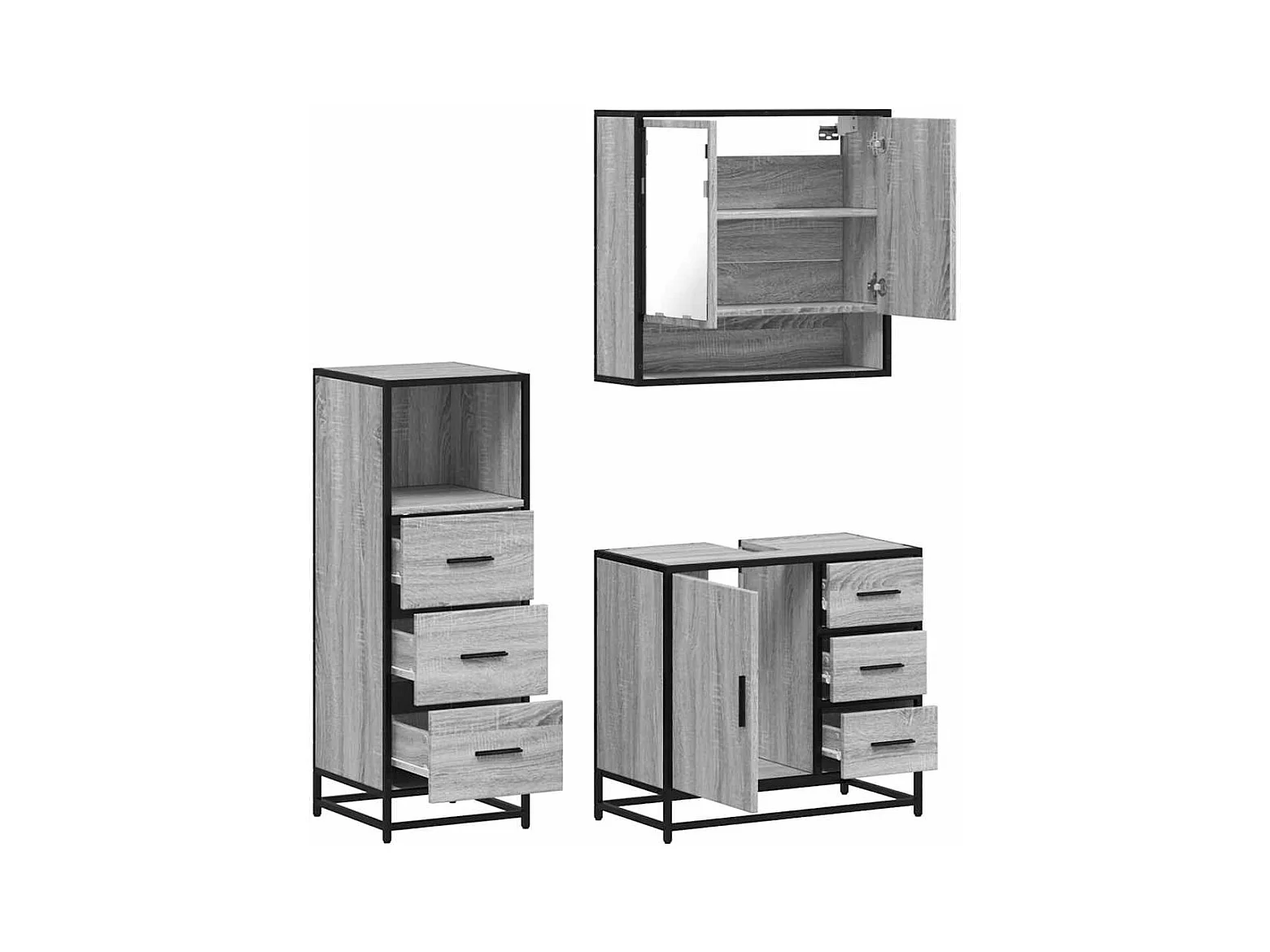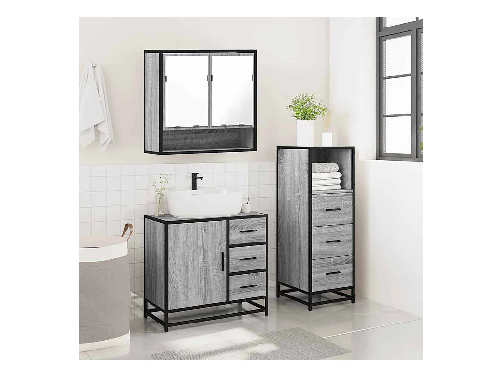 Ensemble de meubles de salle de bain 3 pcs Sonoma gris