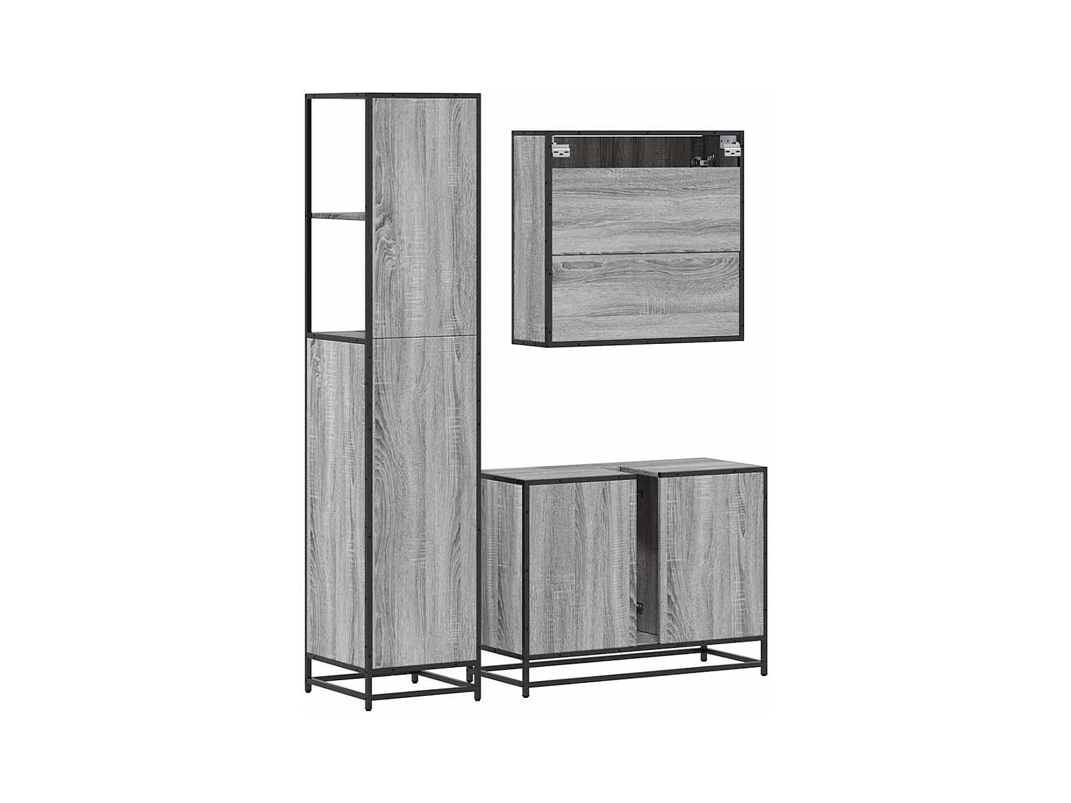Ensemble de meubles de salle de bain 3 pcs Sonoma gris