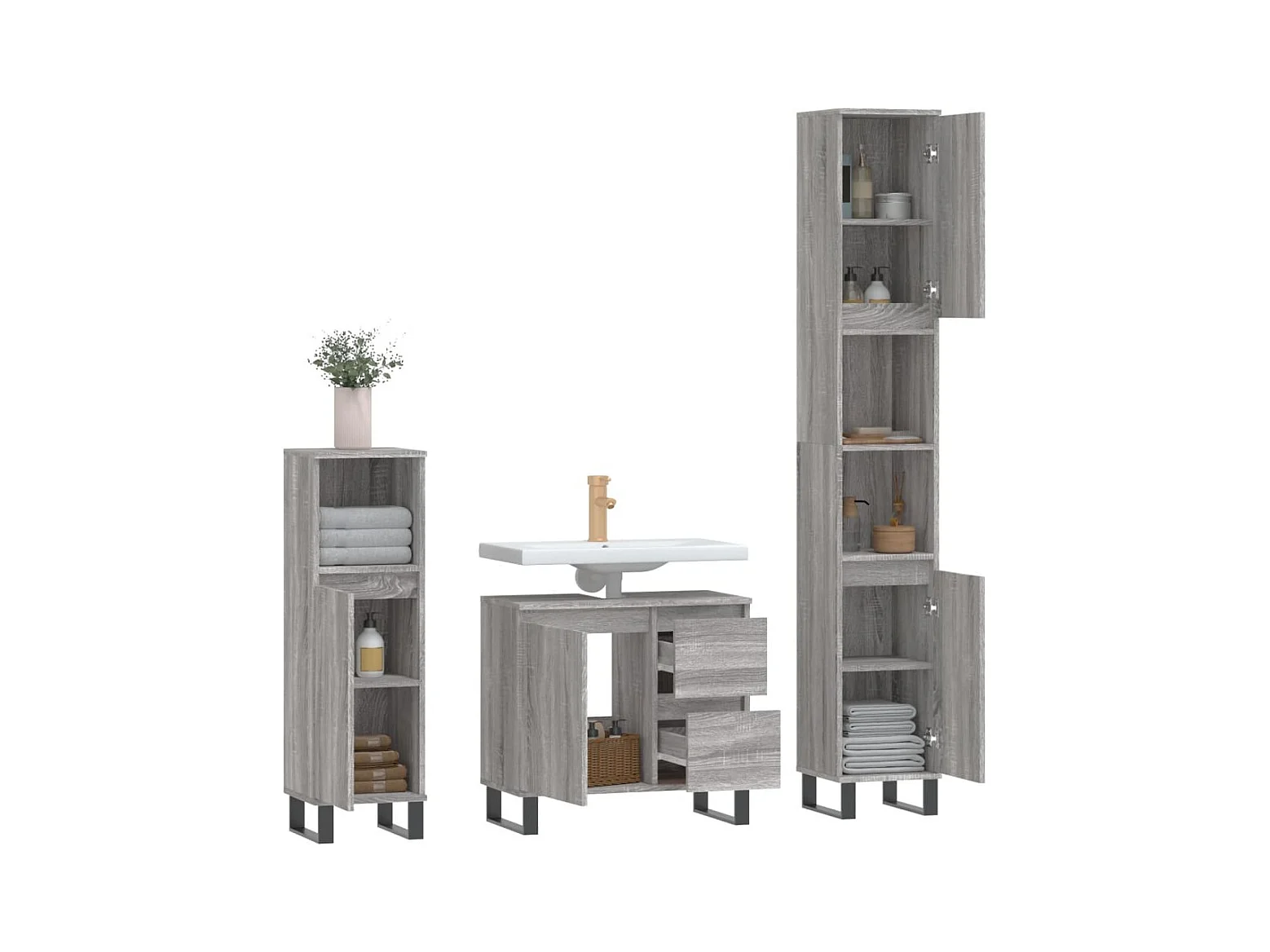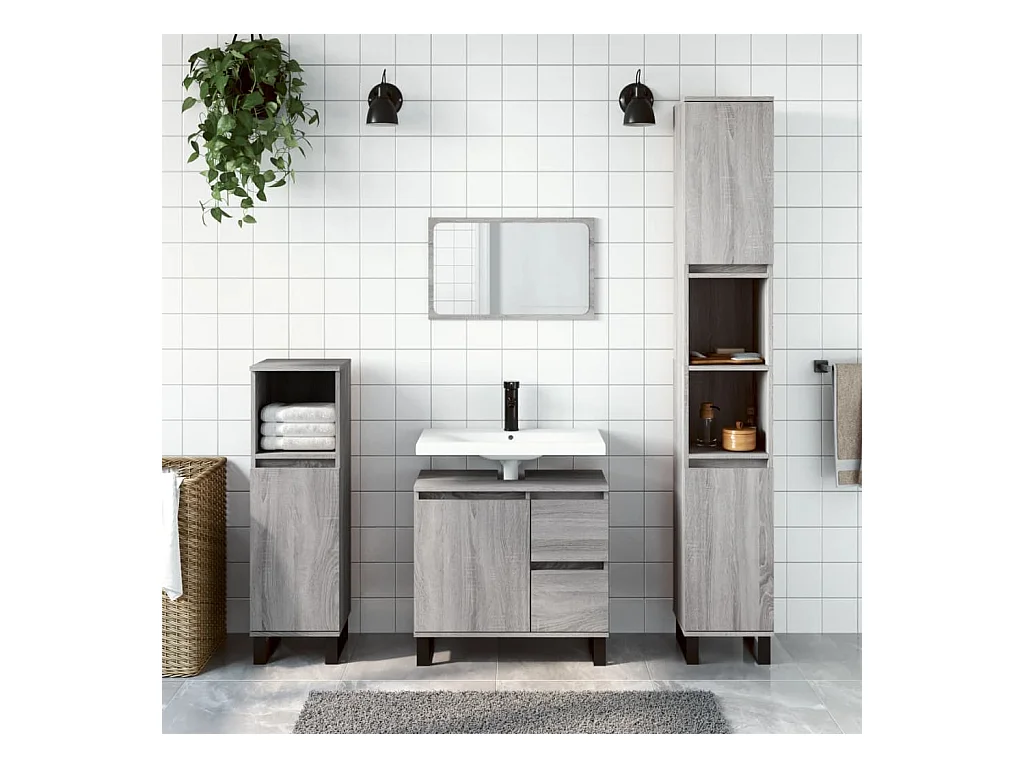 Ensemble de meubles de salle de bain 3 pcs Sonoma gris