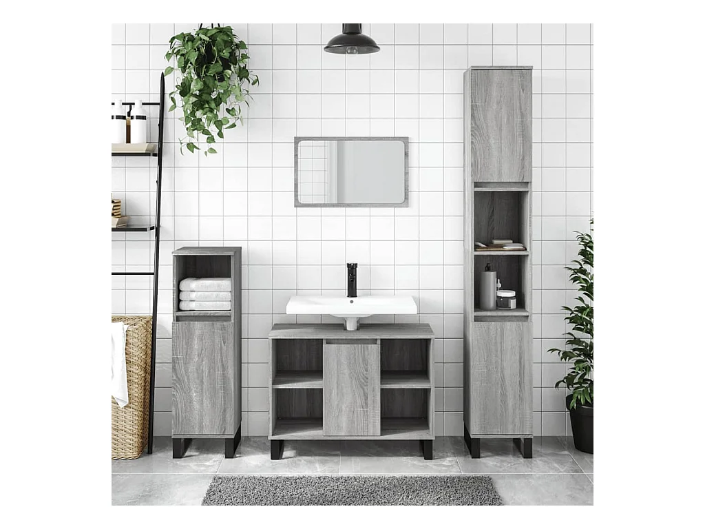 Ensemble de meubles de salle de bain 3 pcs Sonoma gris