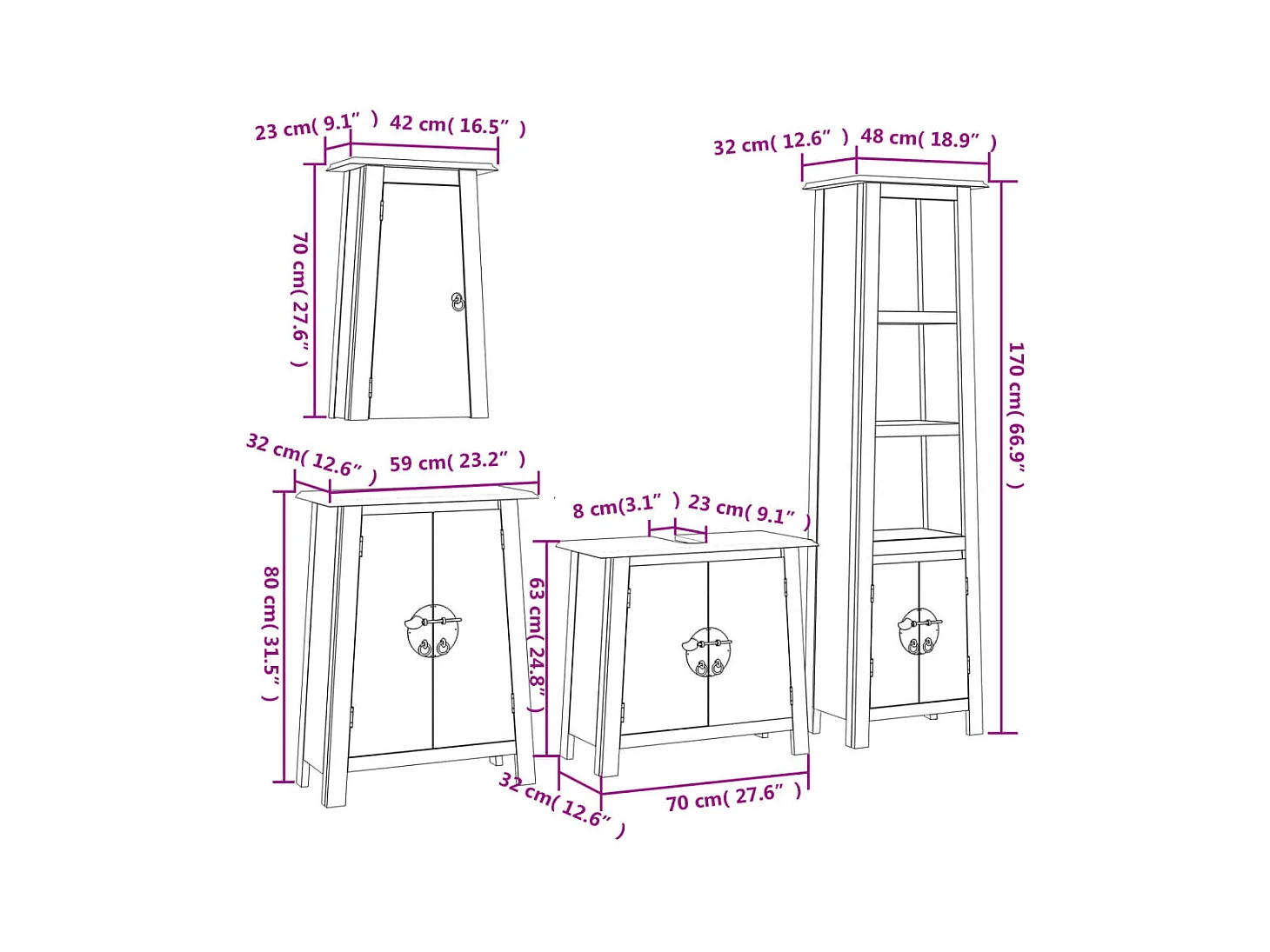 Ensemble de meubles de salle de bain 4 pcs bois de pin massif